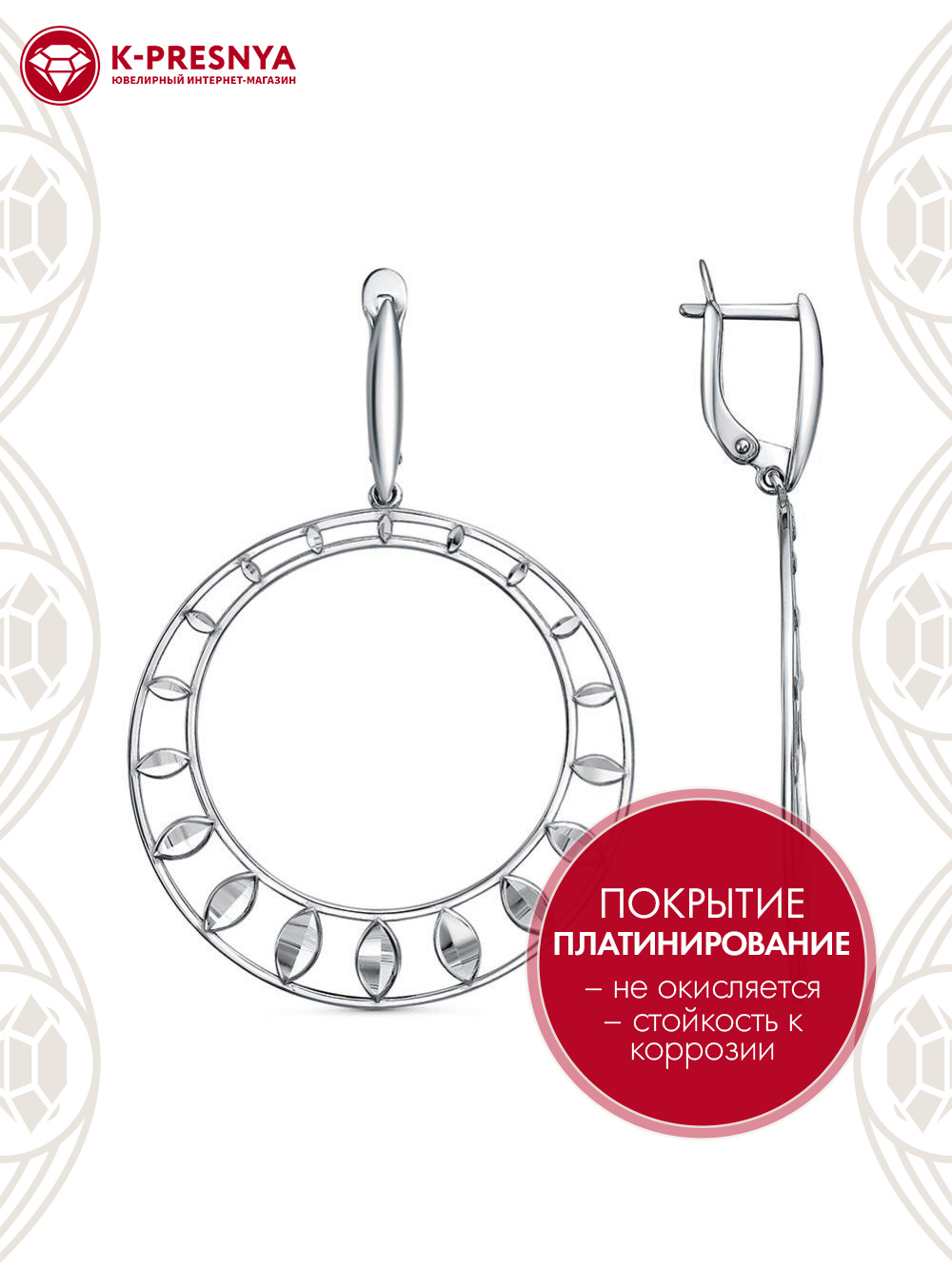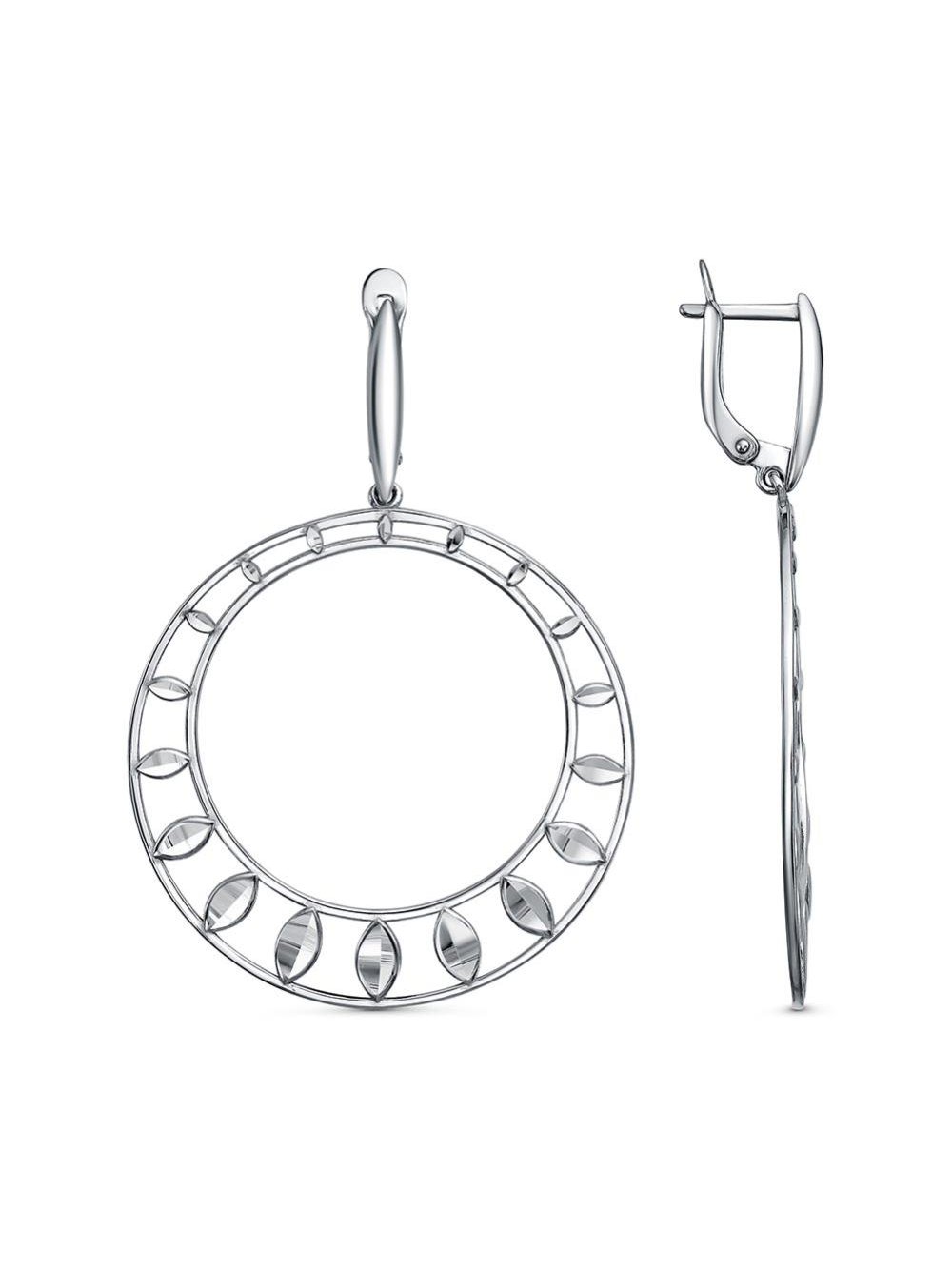 Серьги серебро 925 пробы, покрытие - платинирование, отделка - алмазная грань, без вставок
