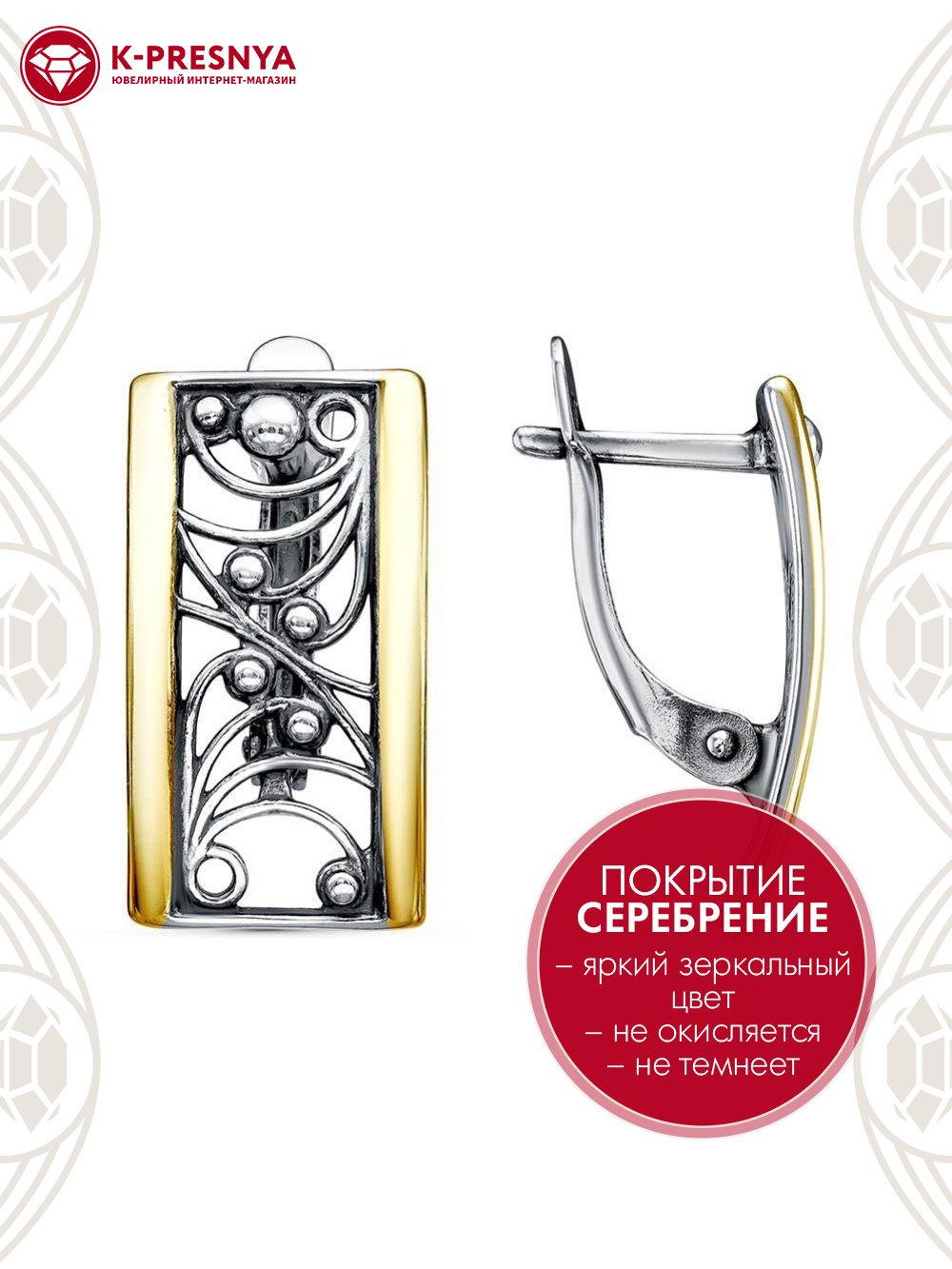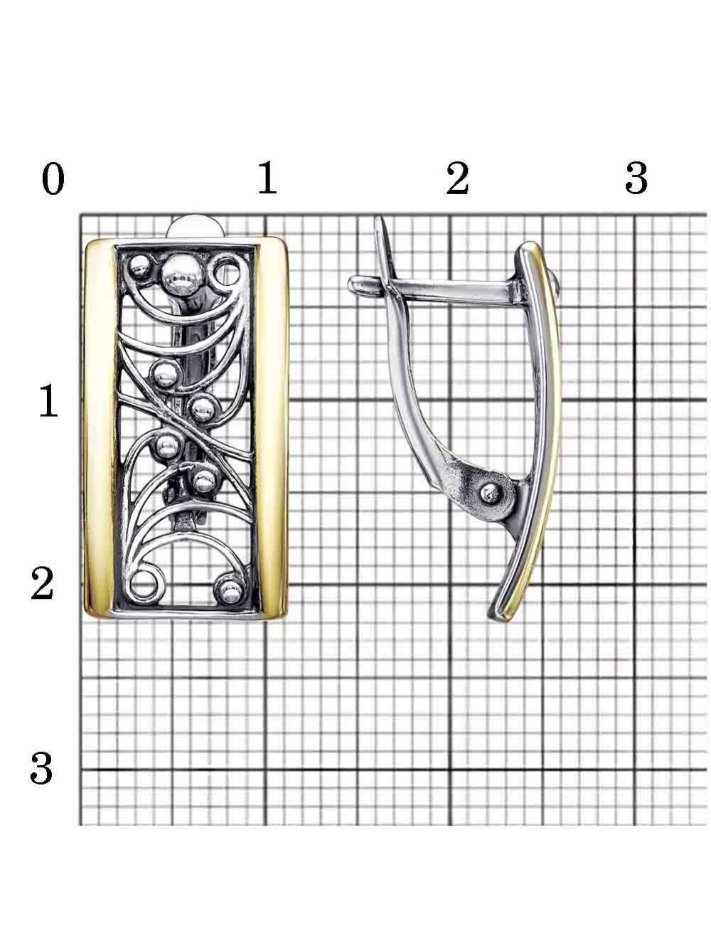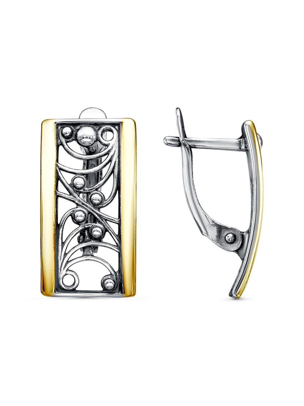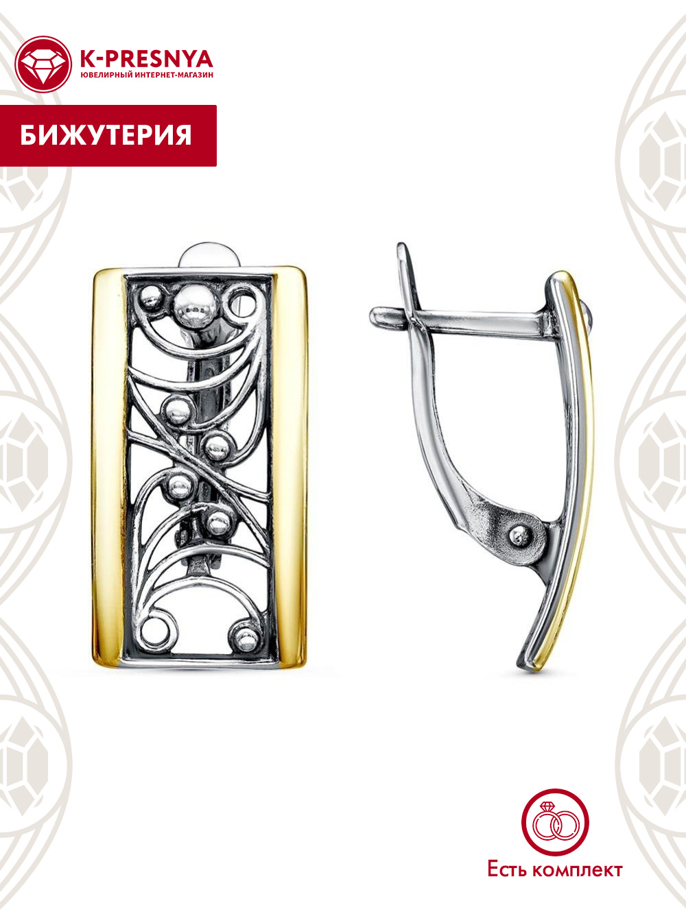 Серьги бижутерия, покрытие - серебрение с оксидированием, выборочное золочение, без вставок