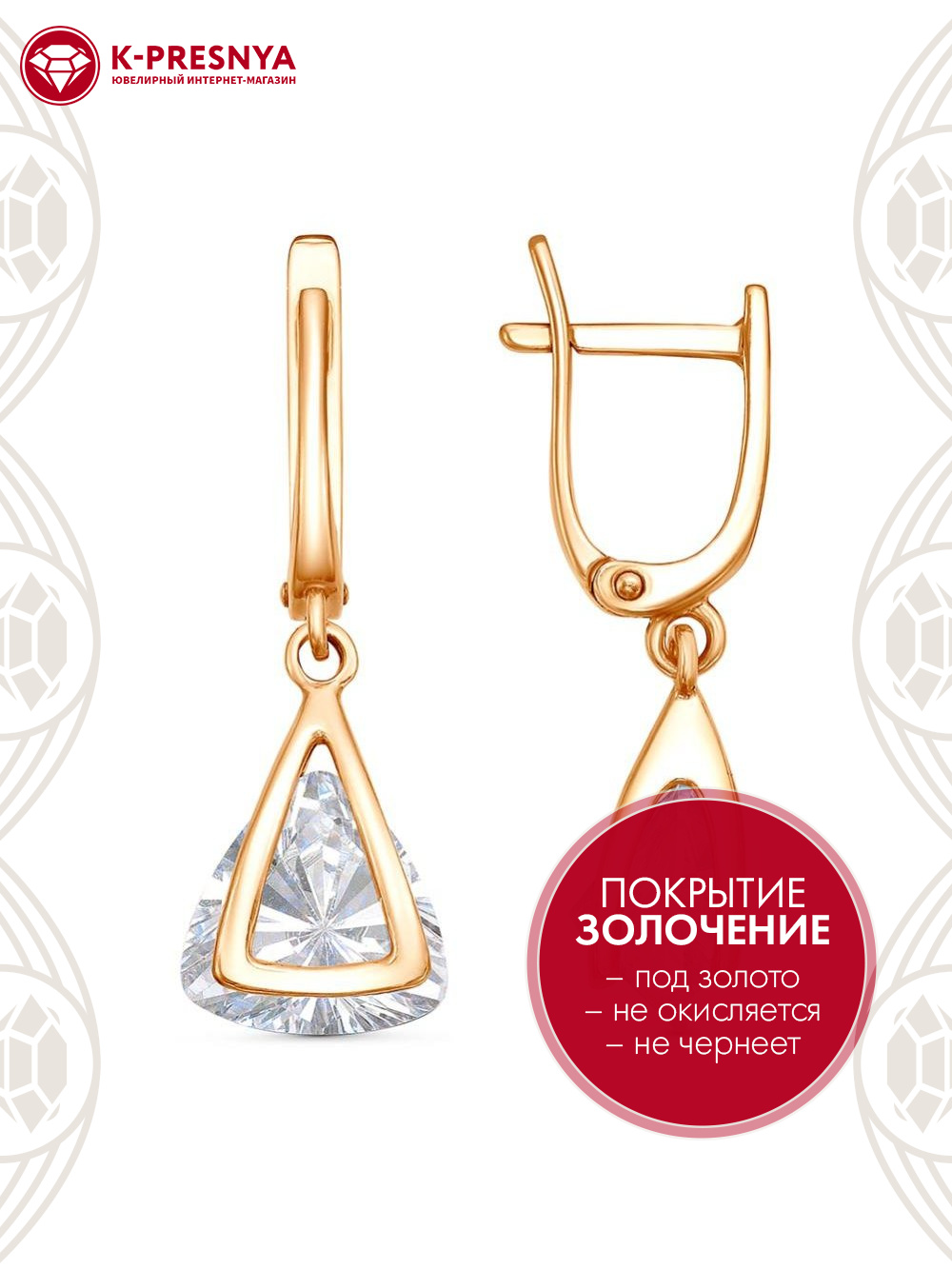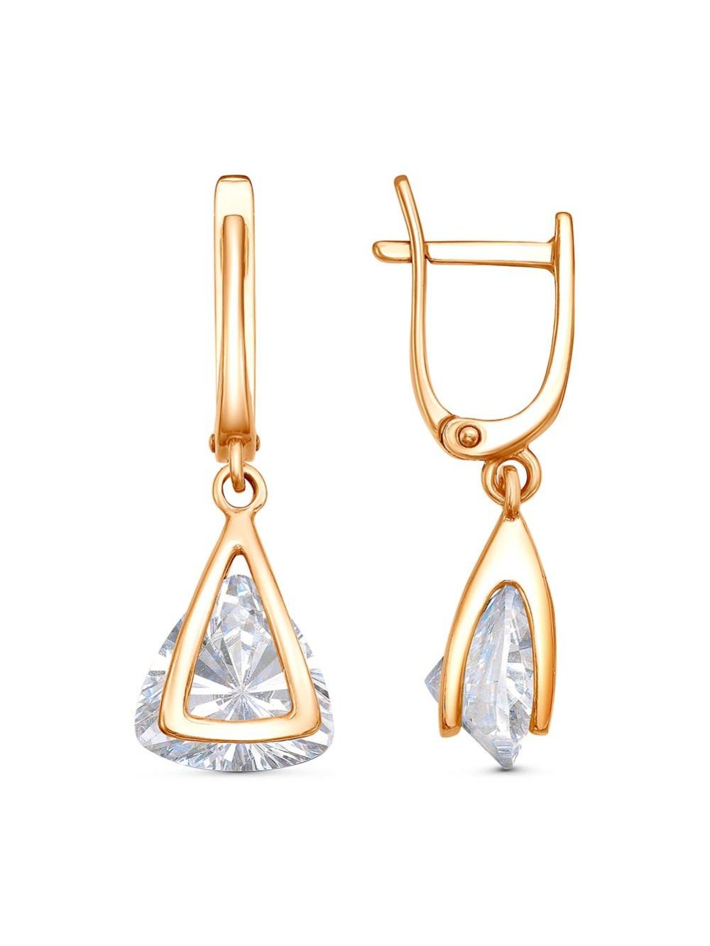 Серьги серебро 925 пробы, покрытие - золочение, вставка - фианит (недрагоценный камень)