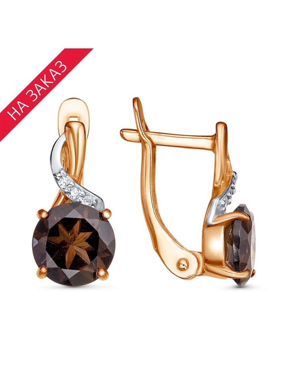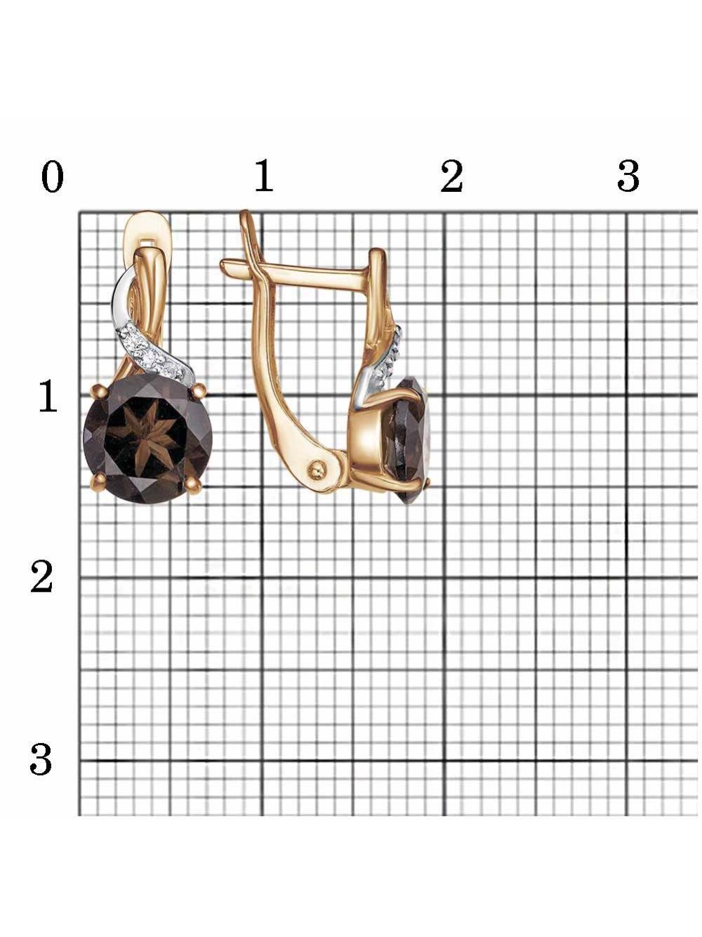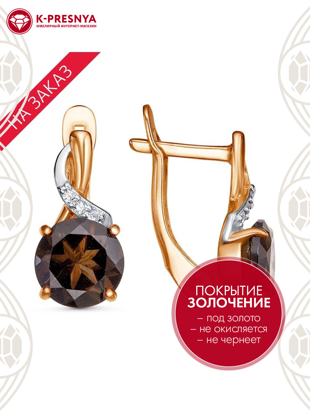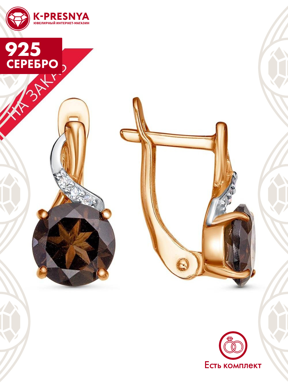 Серьги серебро 925 пробы, покрытие - золочение, выборочное родирование, вставка - дымчатый кварц, фианит (недрагоценный камень)
