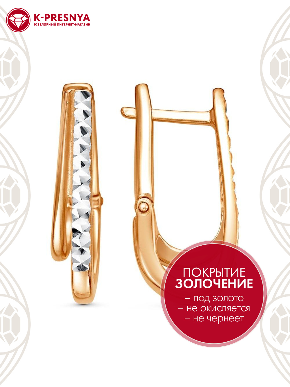 Серьги бижутерия, покрытие - золочение, отделка - алмазная грань, без вставок