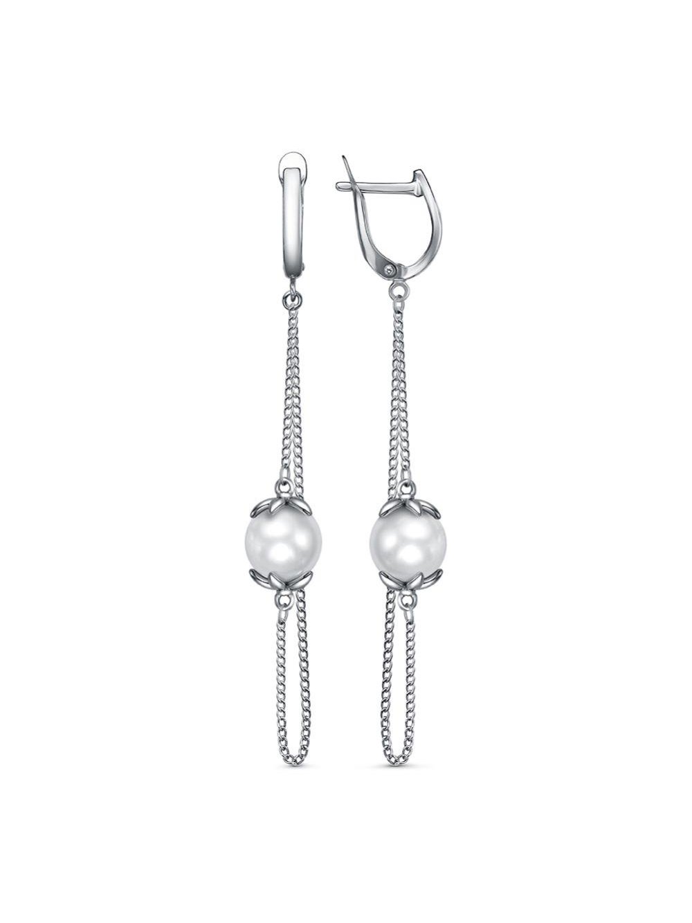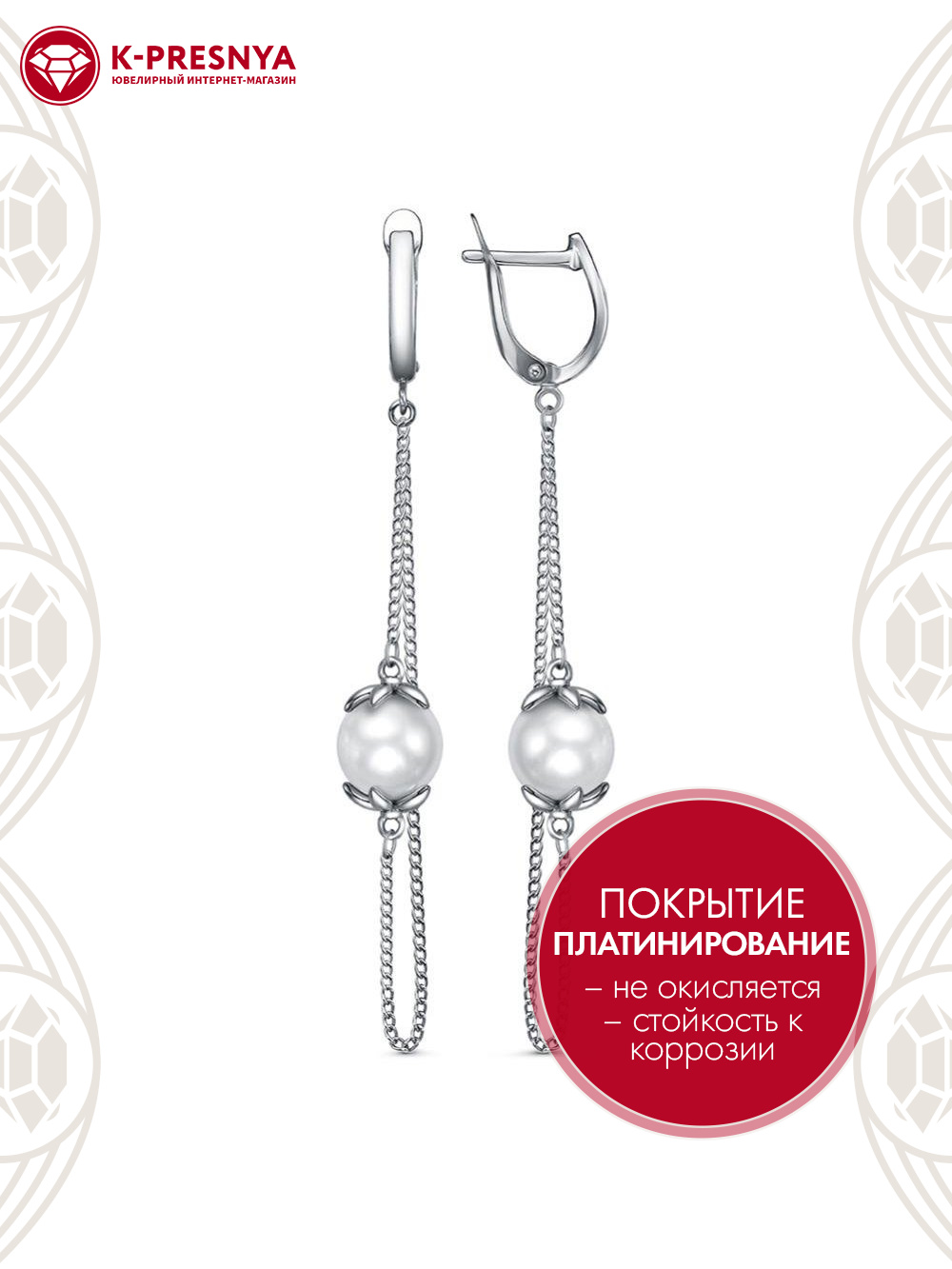 Серьги серебро 925 пробы, покрытие - платинирование, вставка - имитация жемчуга