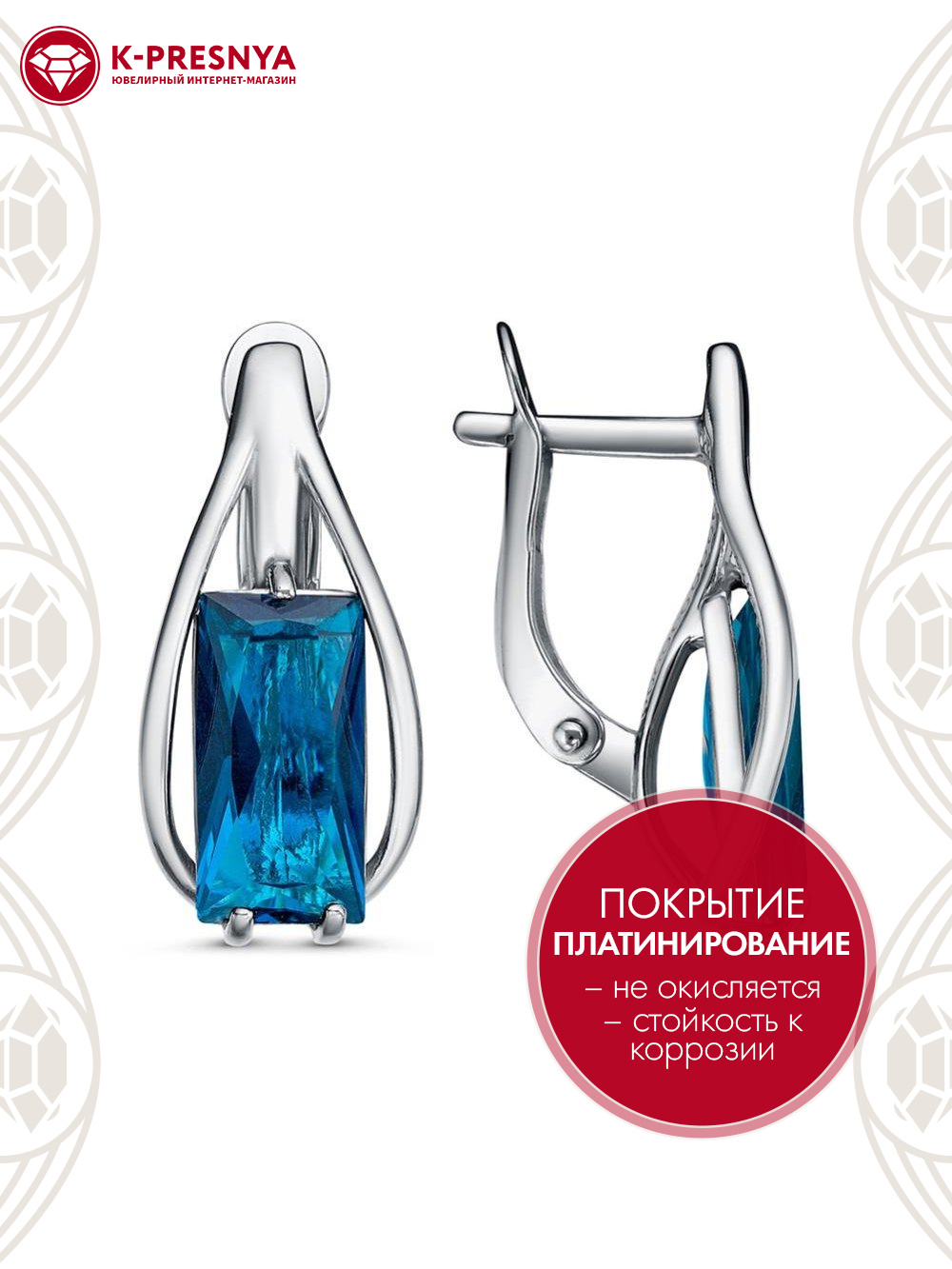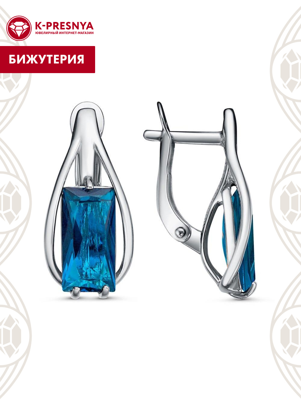 Серьги бижутерия, покрытие - платинирование, вставка - стекло ювелирное собственной огранки