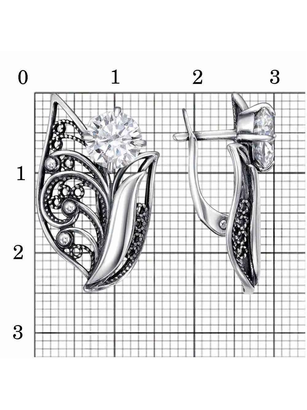 Серьги бижутерия, покрытие - серебрение с оксидированием, вставка - фианит (недрагоценный камень)