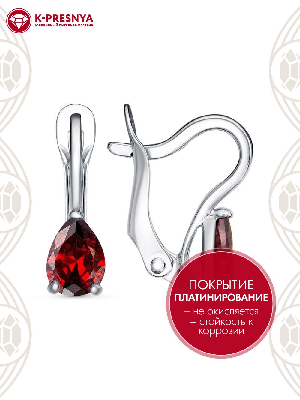 Серьги бижутерия, покрытие - платинирование, вставка - фианит (недрагоценный камень)