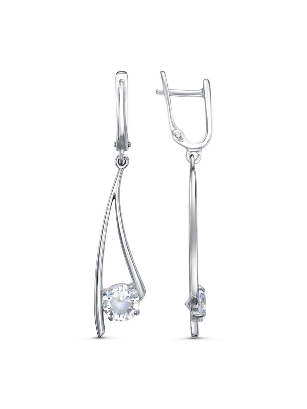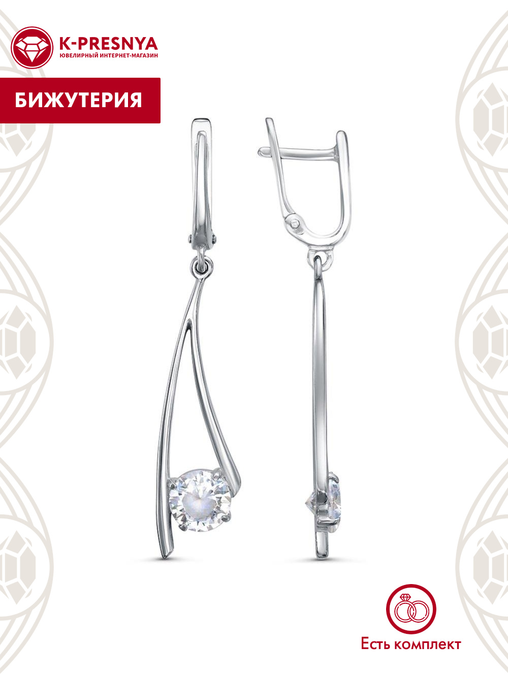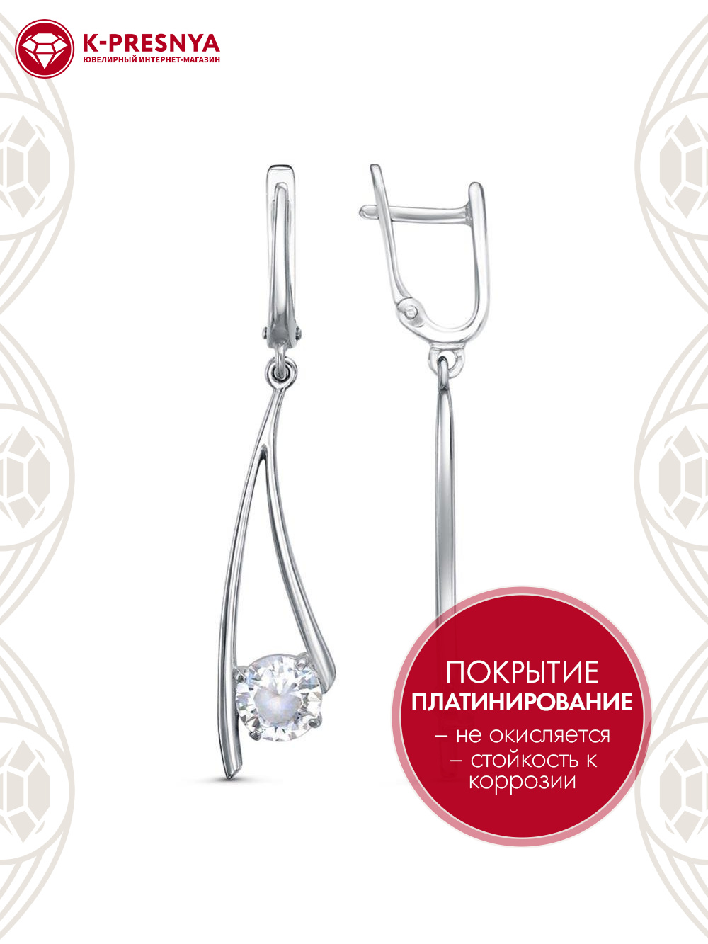 Серьги бижутерия, покрытие - платинирование, вставка - фианит (недрагоценный камень)