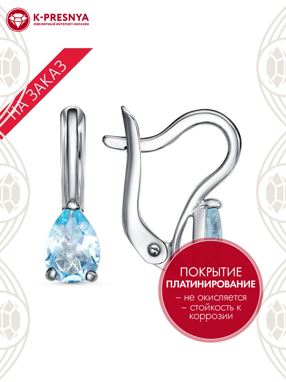 Серьги серебро 925 пробы, покрытие - платинирование, вставка - голубой топаз (полудрагоценный камень)