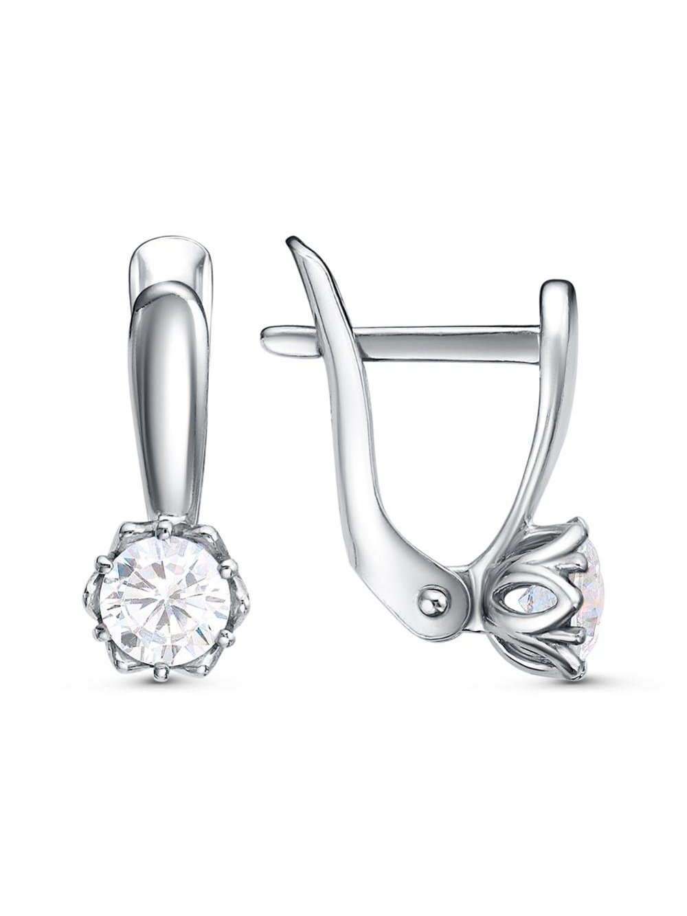 Серьги серебро 925 пробы, покрытие - платинирование, вставка - фианит (недрагоценный камень)