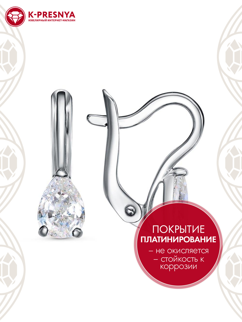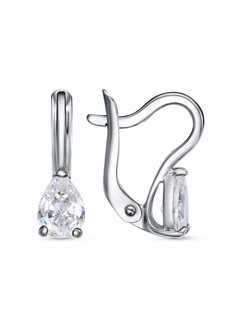 Серьги серебро 925 пробы, покрытие - платинирование, вставка - фианит (недрагоценный камень)