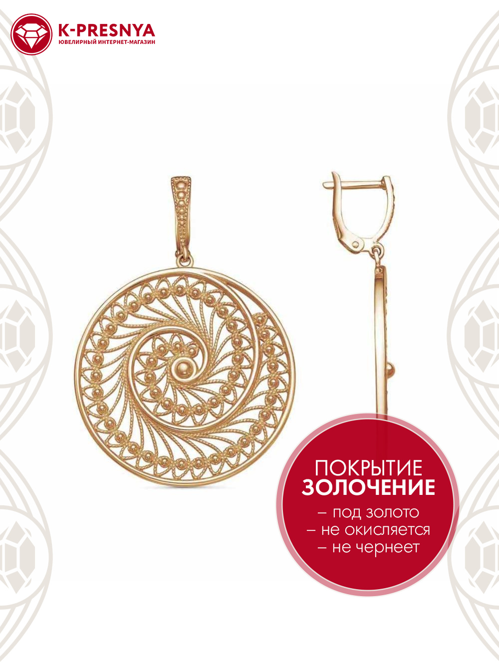 Серьги бижутерия, покрытие - золочение, без вставок