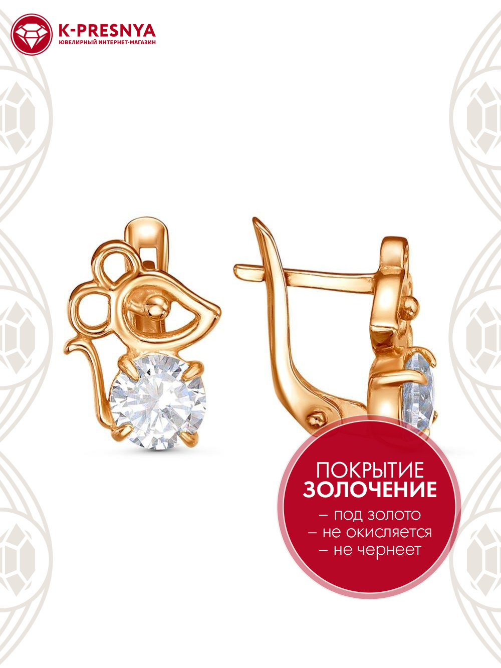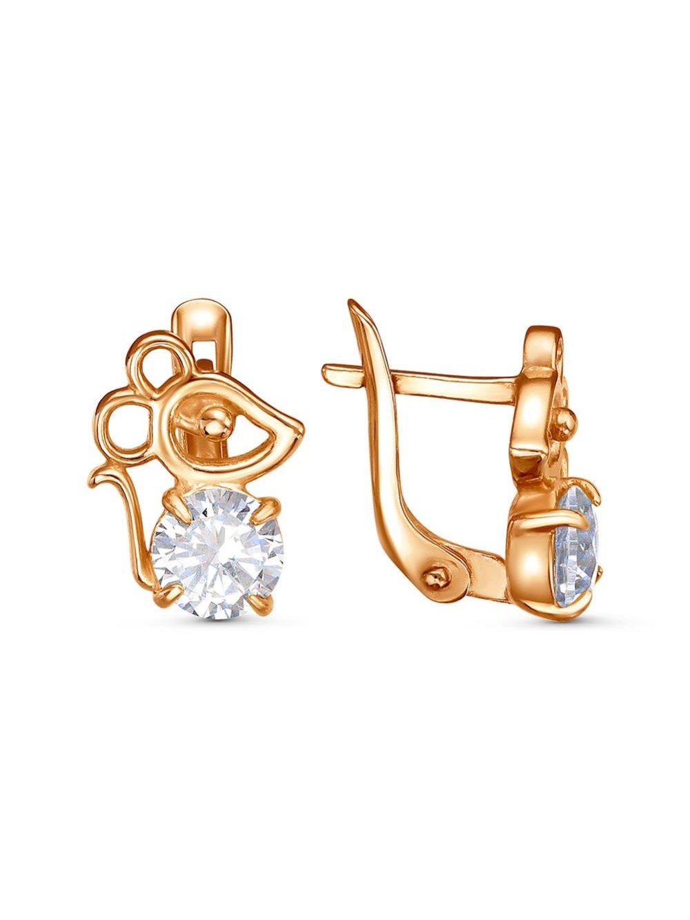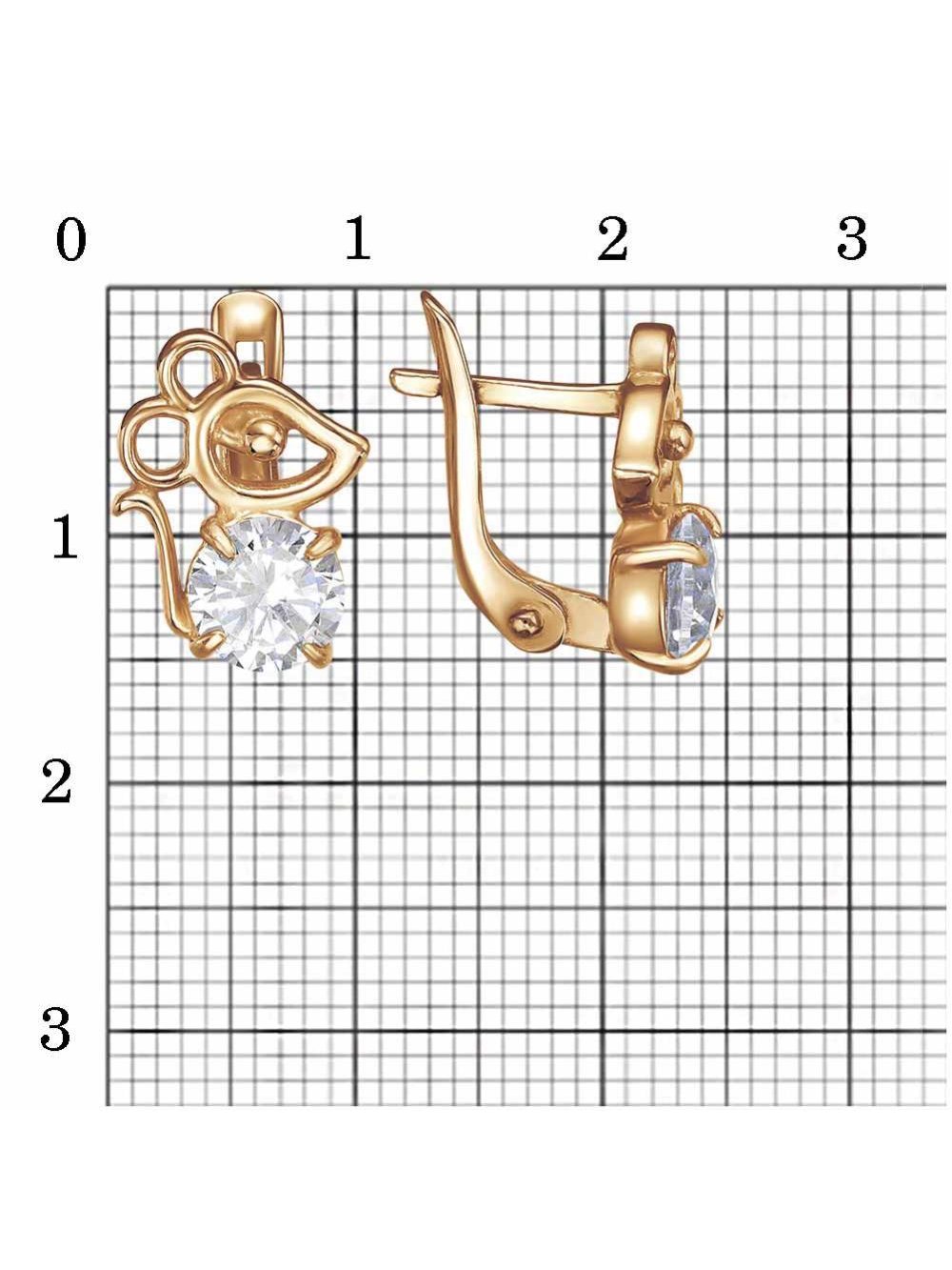Серьги серебро 925 пробы, покрытие - золочение, вставка - фианит (недрагоценный камень)