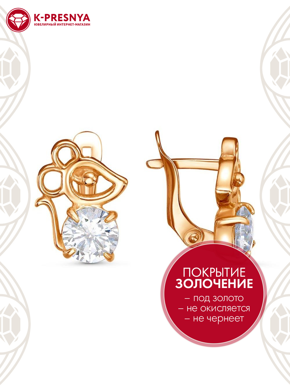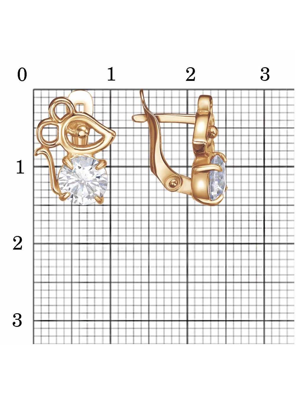 Серьги бижутерия, покрытие - золочение, вставка - фианит (недрагоценный камень)