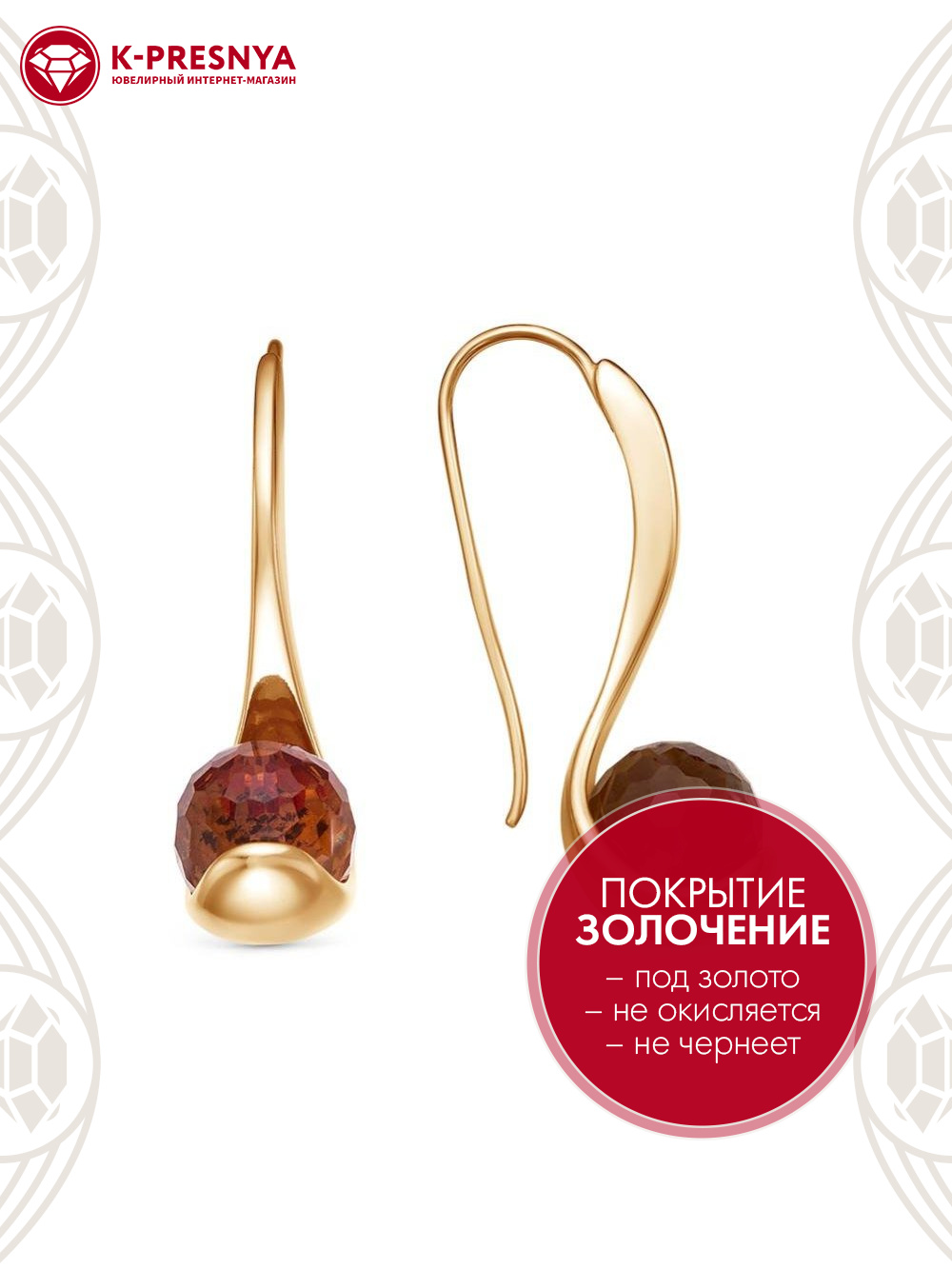 Серьги бижутерия, покрытие - золочение, вставка - искусственный султанит