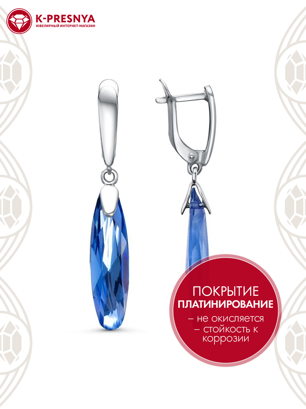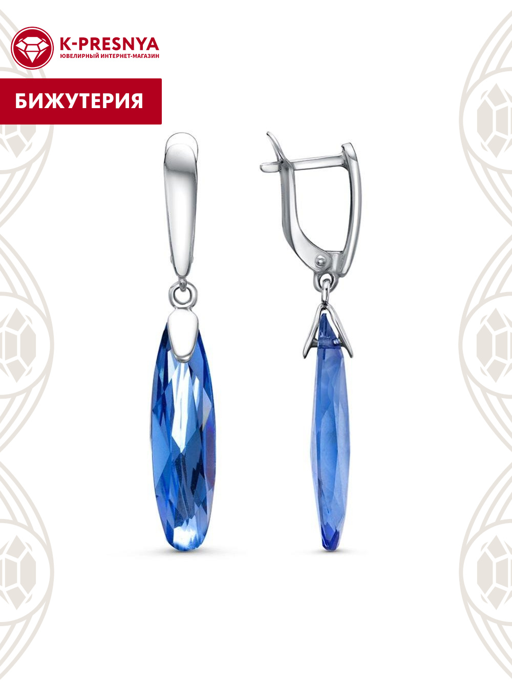 Серьги бижутерия, покрытие - платинирование, вставка - стекло ювелирное собственной огранки