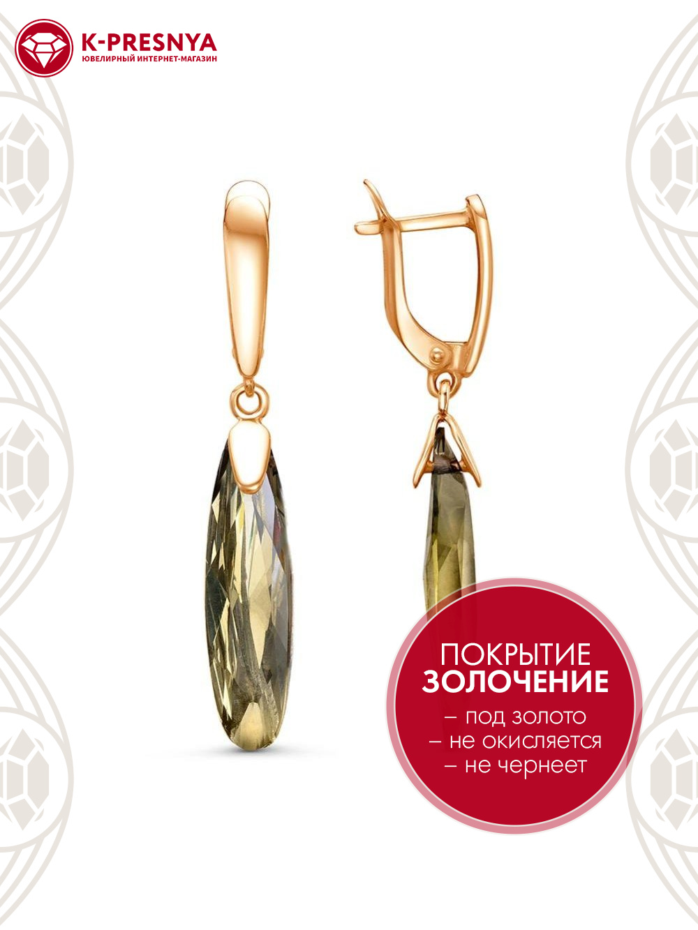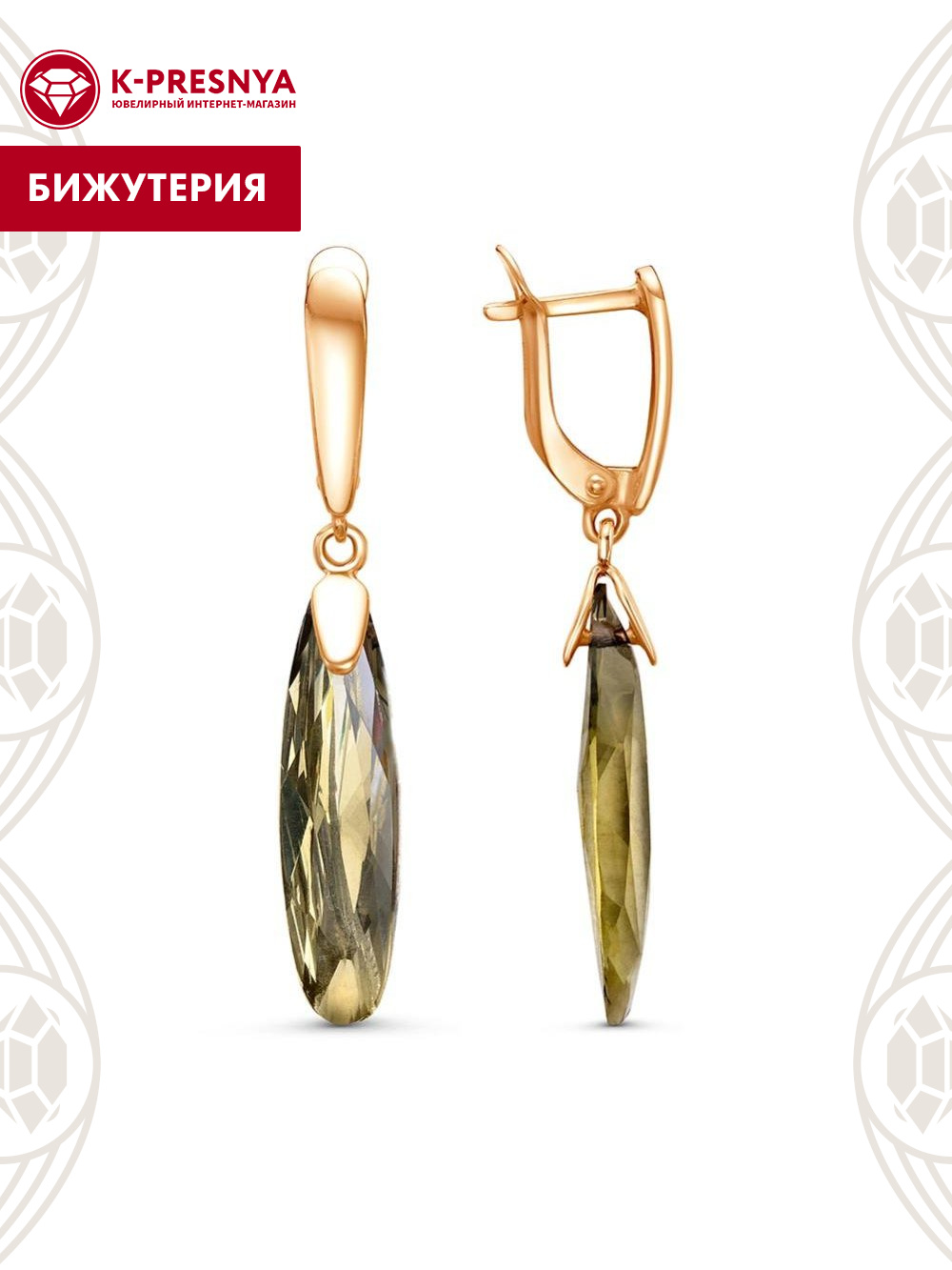 Серьги бижутерия, покрытие - золочение, вставка - стекло ювелирное собственной огранки