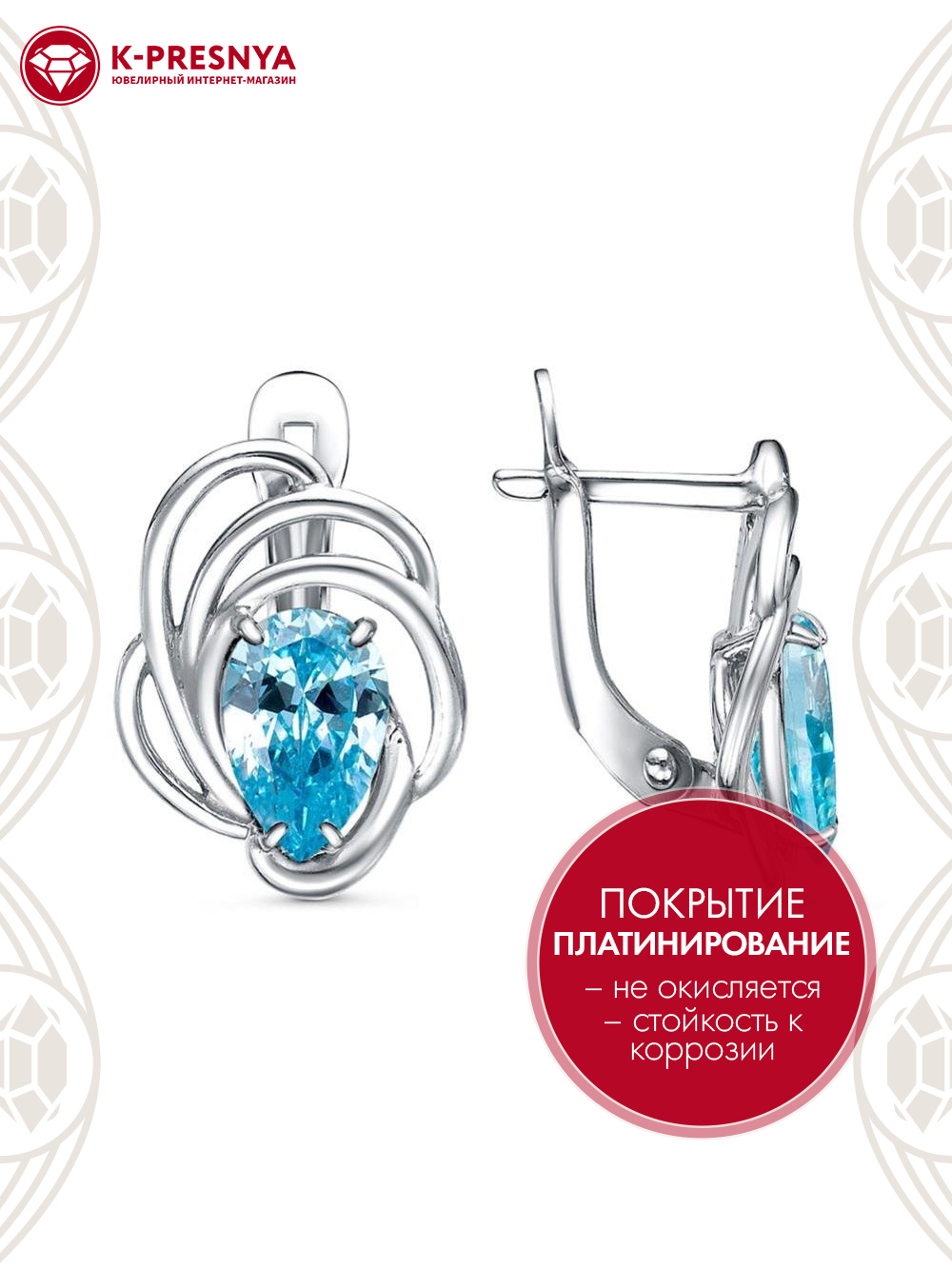 Серьги бижутерия, покрытие - платинирование, вставка - фианит (недрагоценный камень)