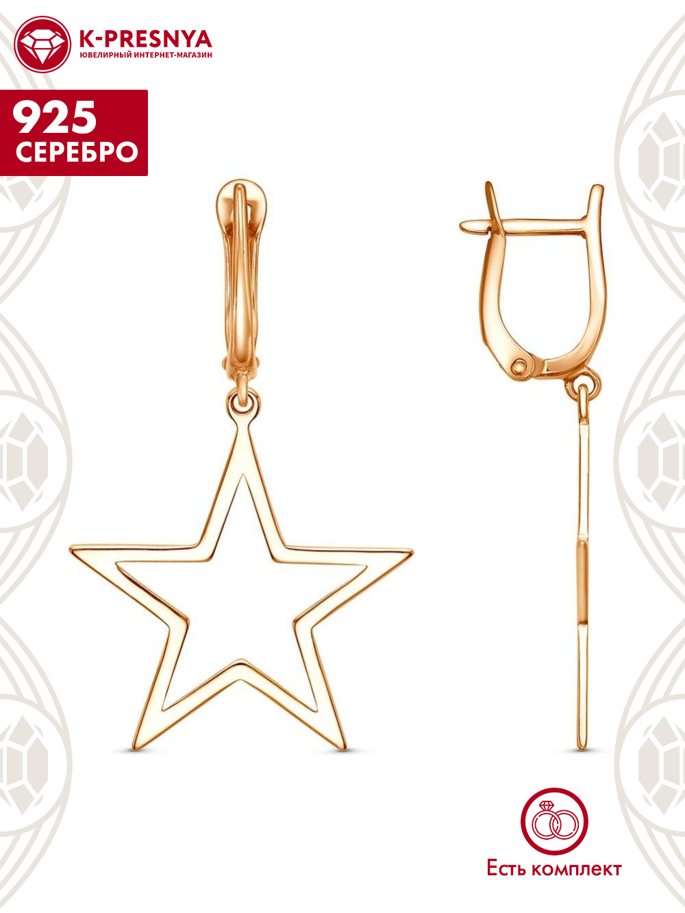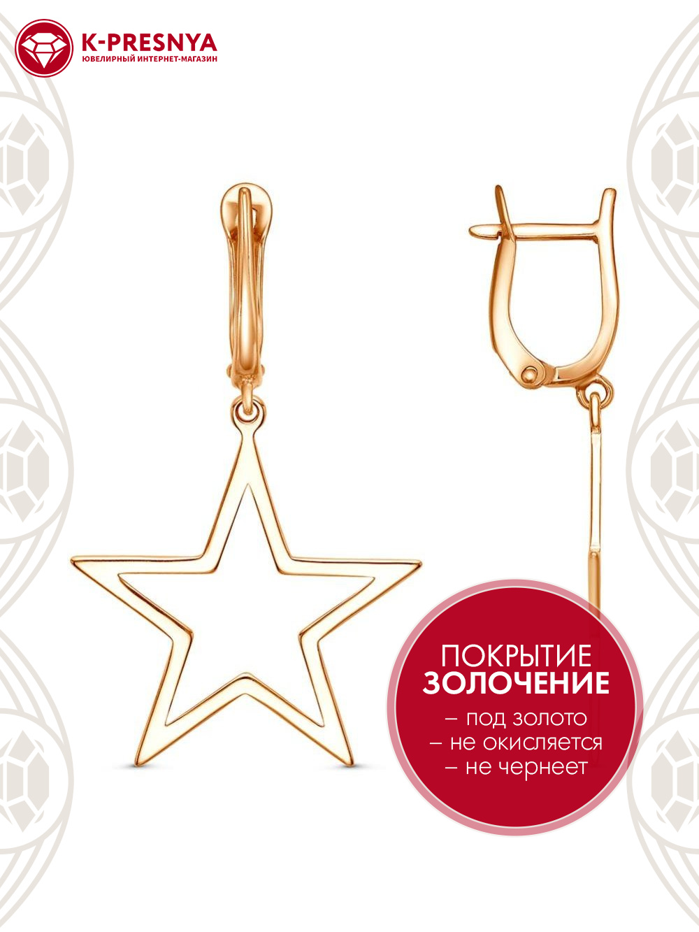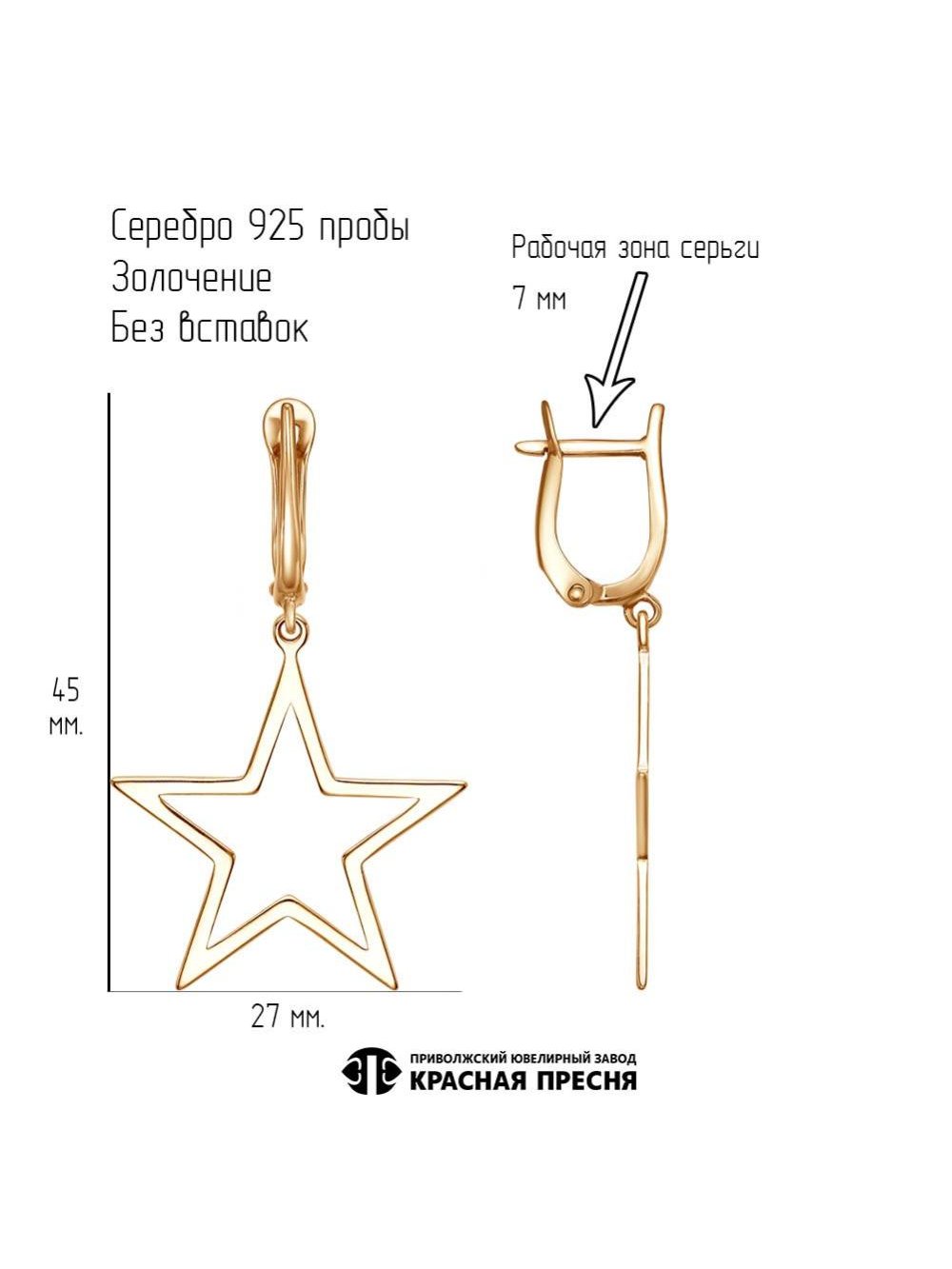 Серьги серебро 925 пробы, покрытие - золочение, без вставок