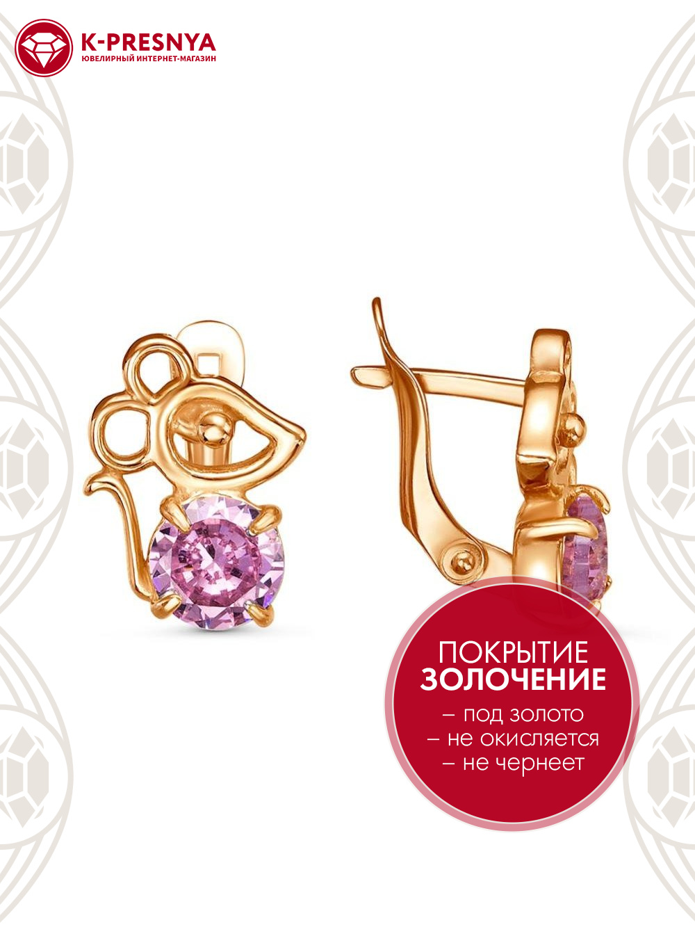 Серьги бижутерия, покрытие - золочение, вставка - фианит (недрагоценный камень)