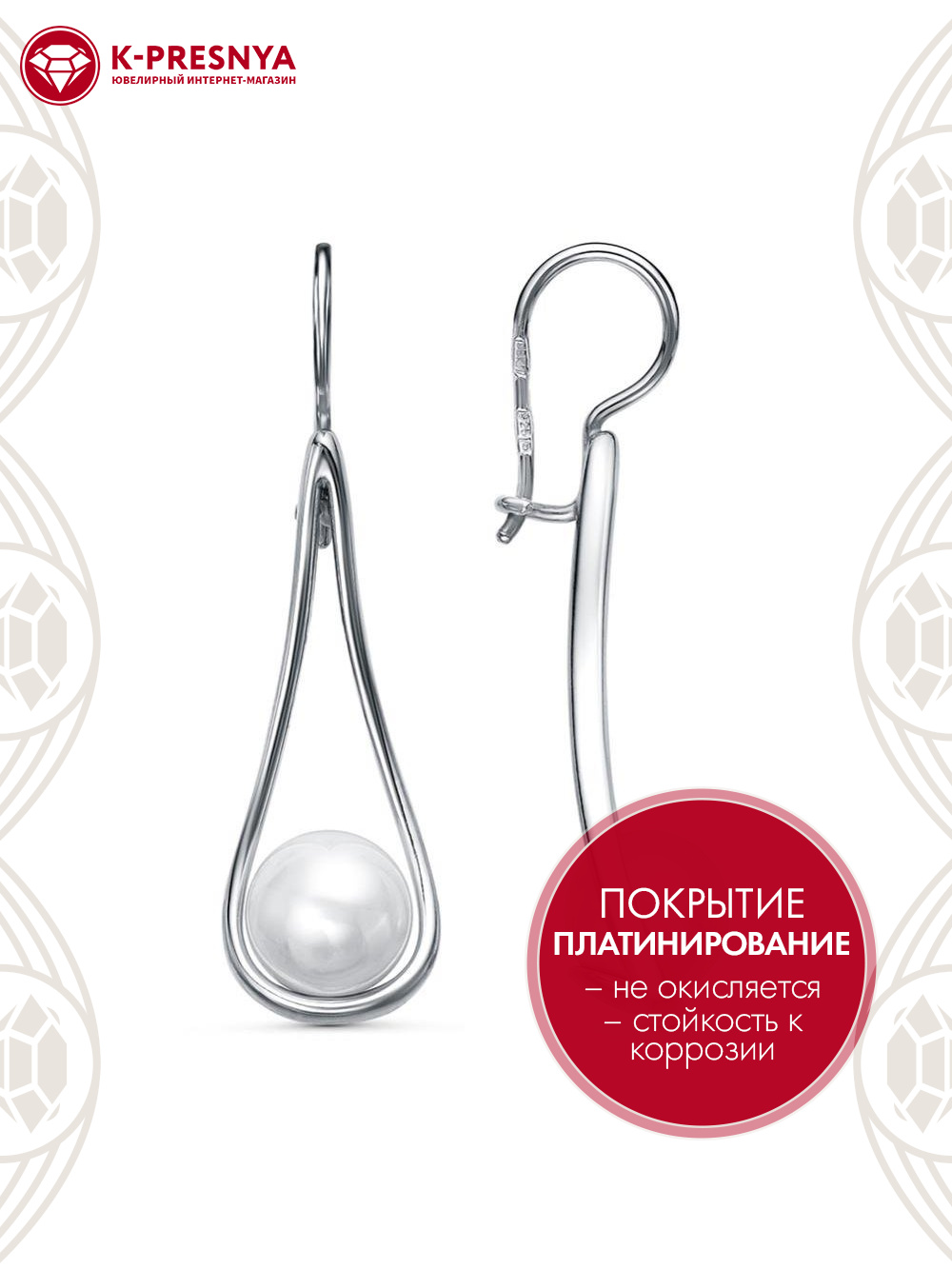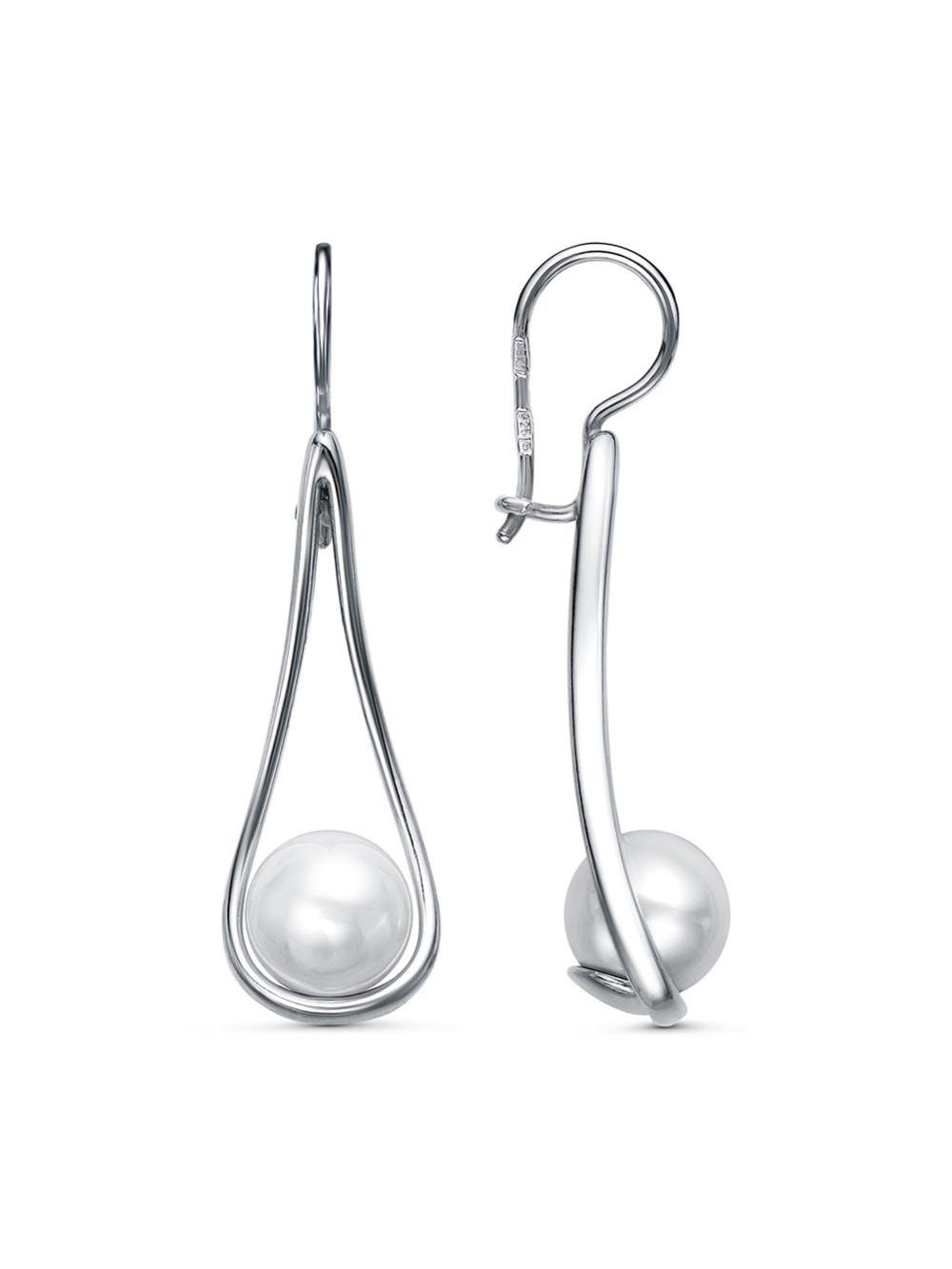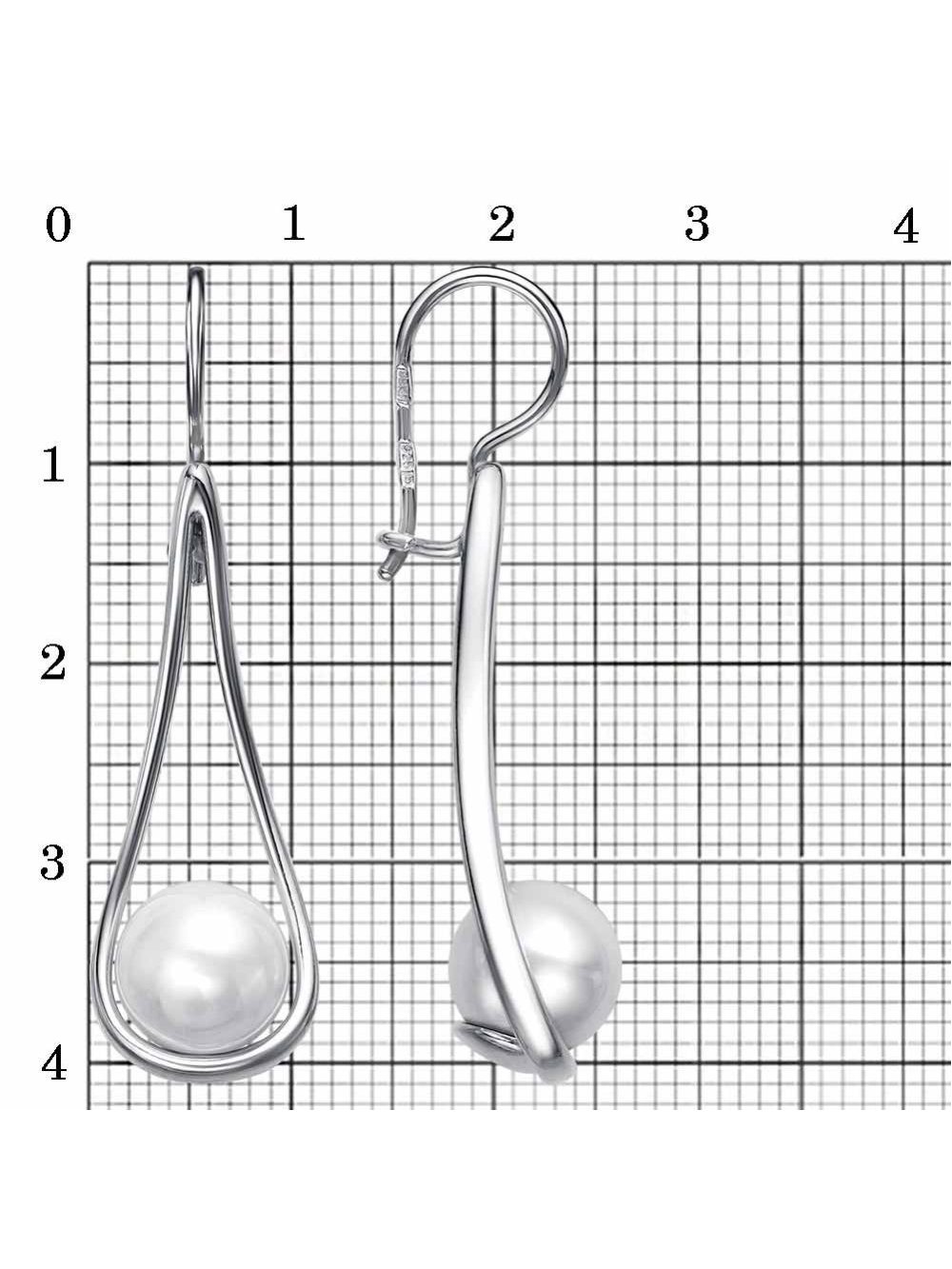 Серьги серебро 925 пробы, покрытие - платинирование, вставка - имитация жемчуга