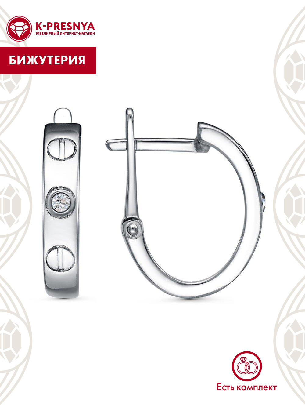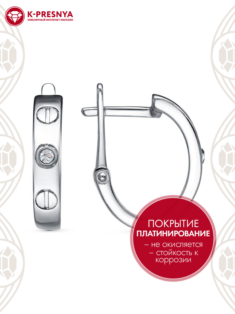 Серьги бижутерия, покрытие - платинирование, вставка - стекло ювелирное preciosa