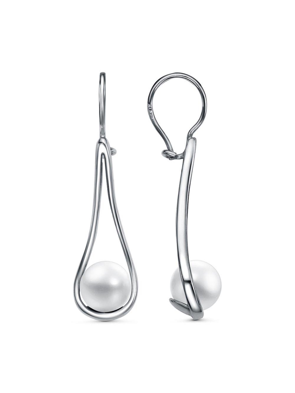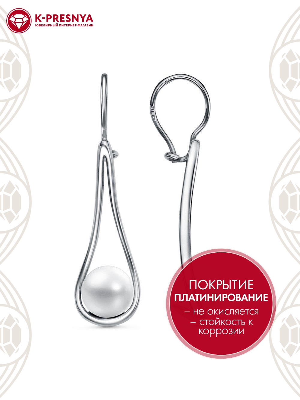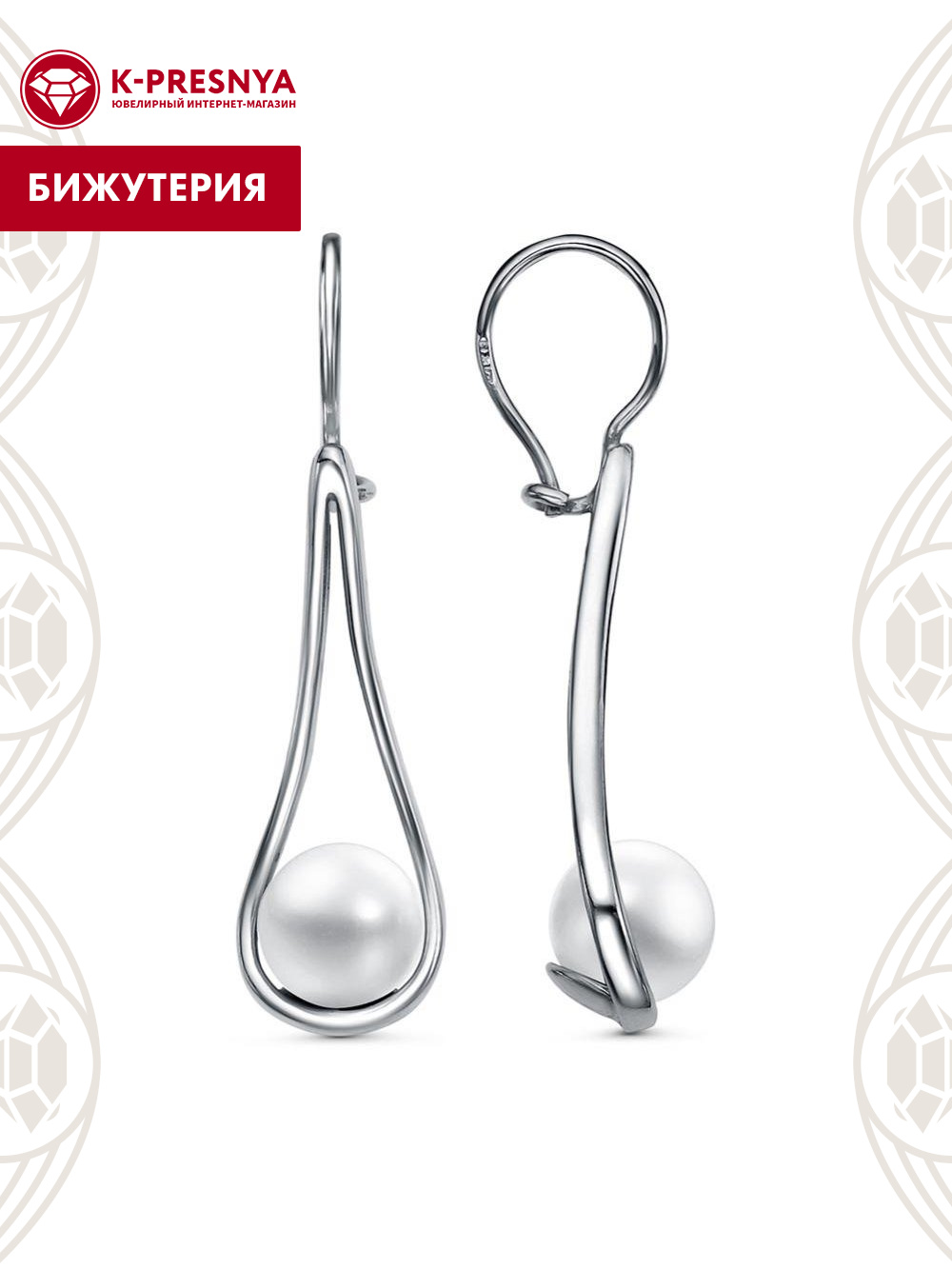 Серьги бижутерия, покрытие - платинирование, вставка - имитация жемчуга