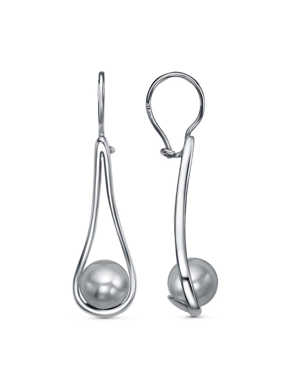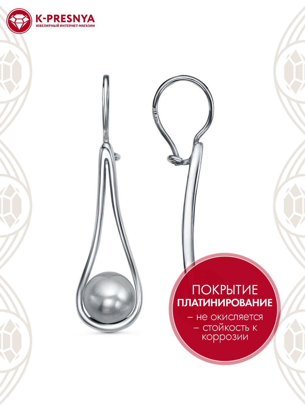 Серьги бижутерия, покрытие - платинирование, вставка - имитация жемчуга