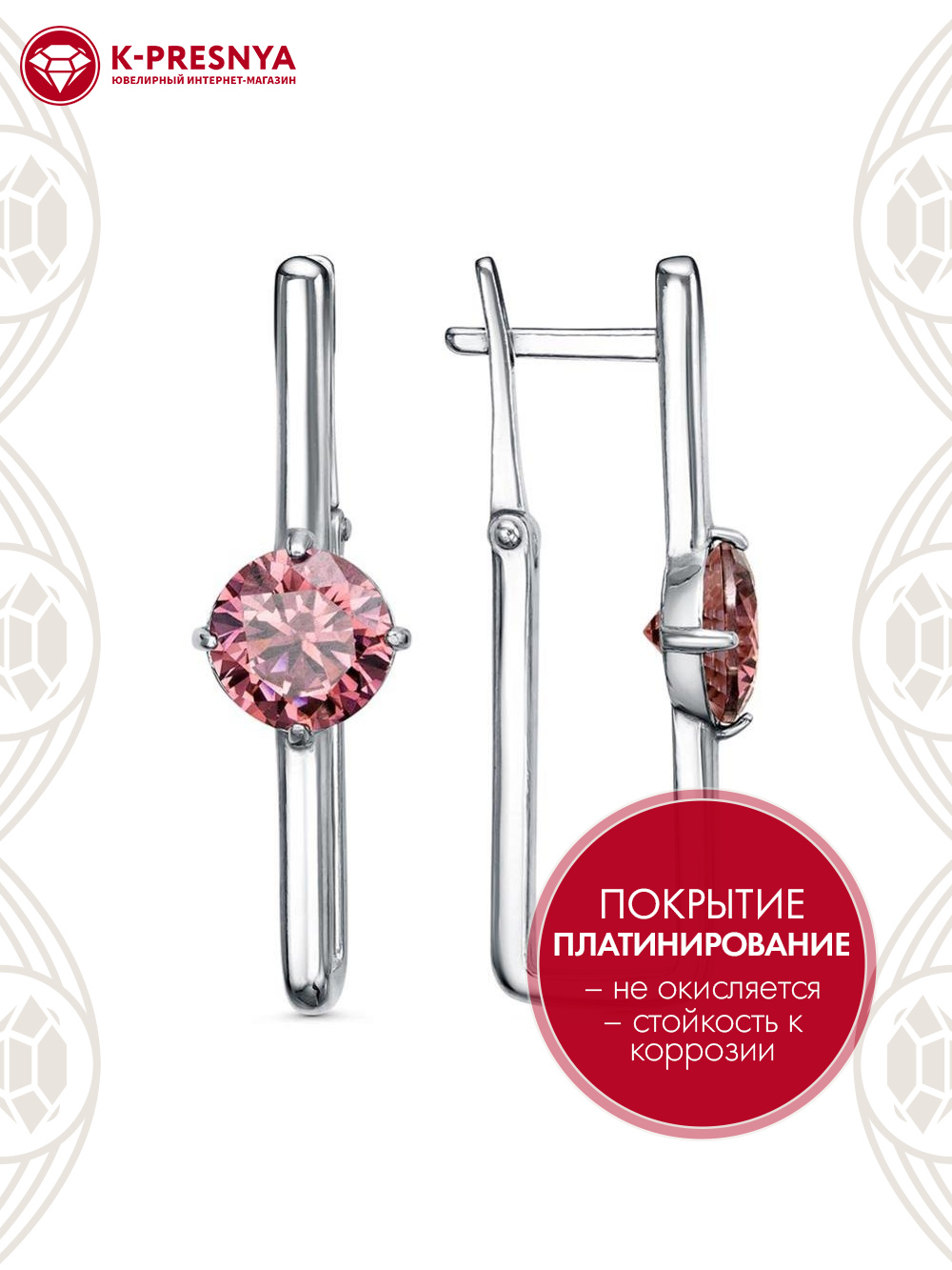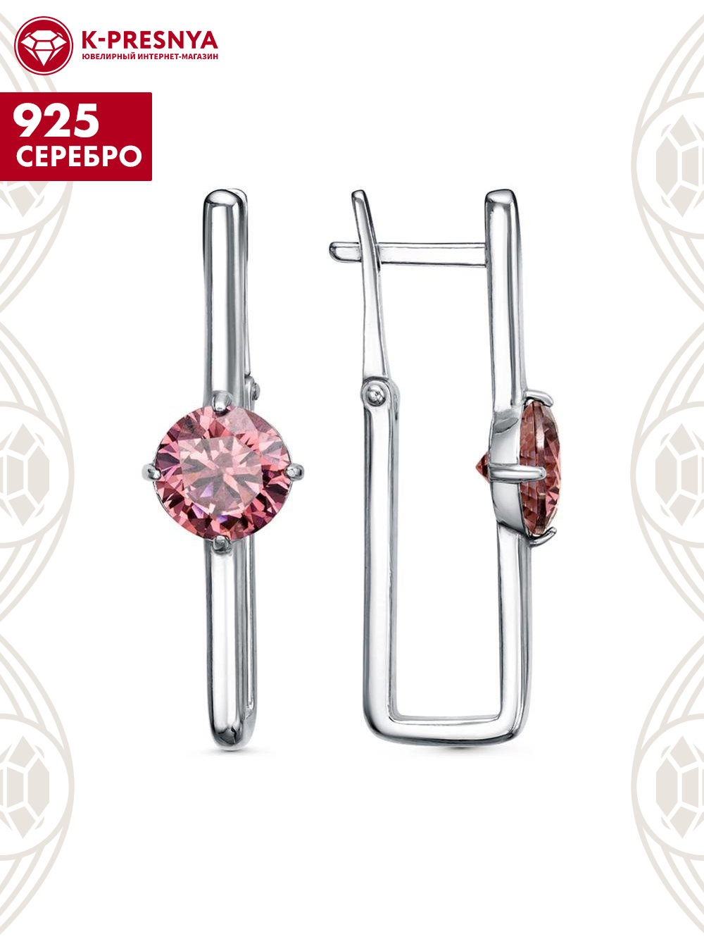 Серьги серебро 925 пробы, покрытие - платинирование, вставка - фианит (недрагоценный камень)