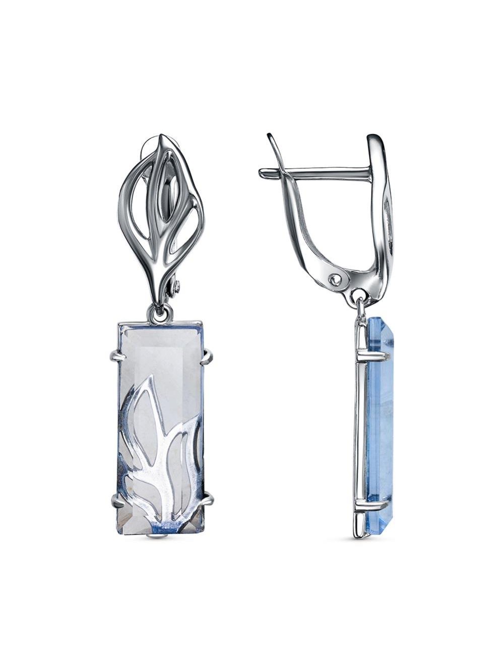 Серьги серебро 925 пробы, покрытие - оксидирование, вставка - стекло ювелирное собственной огранки