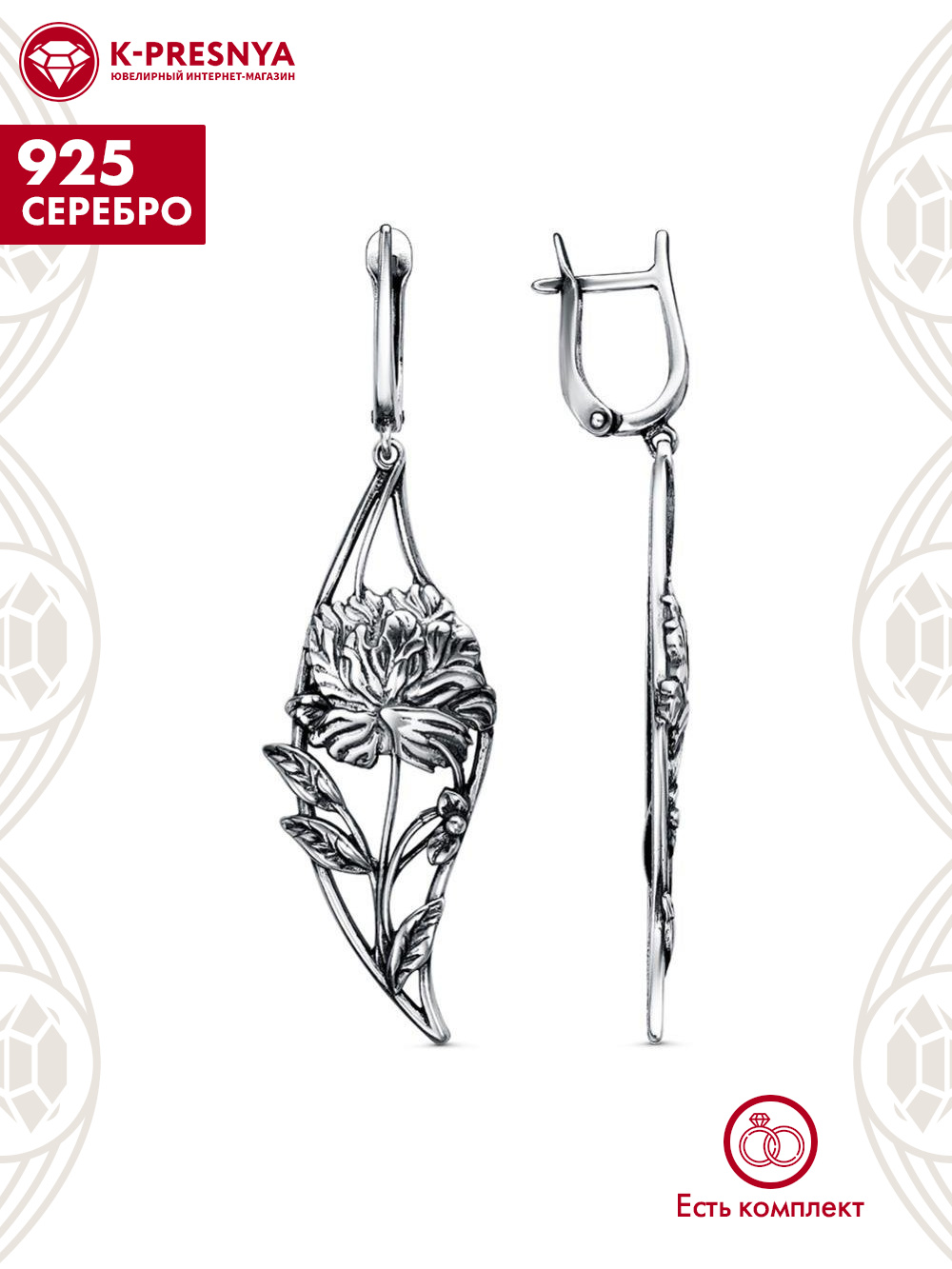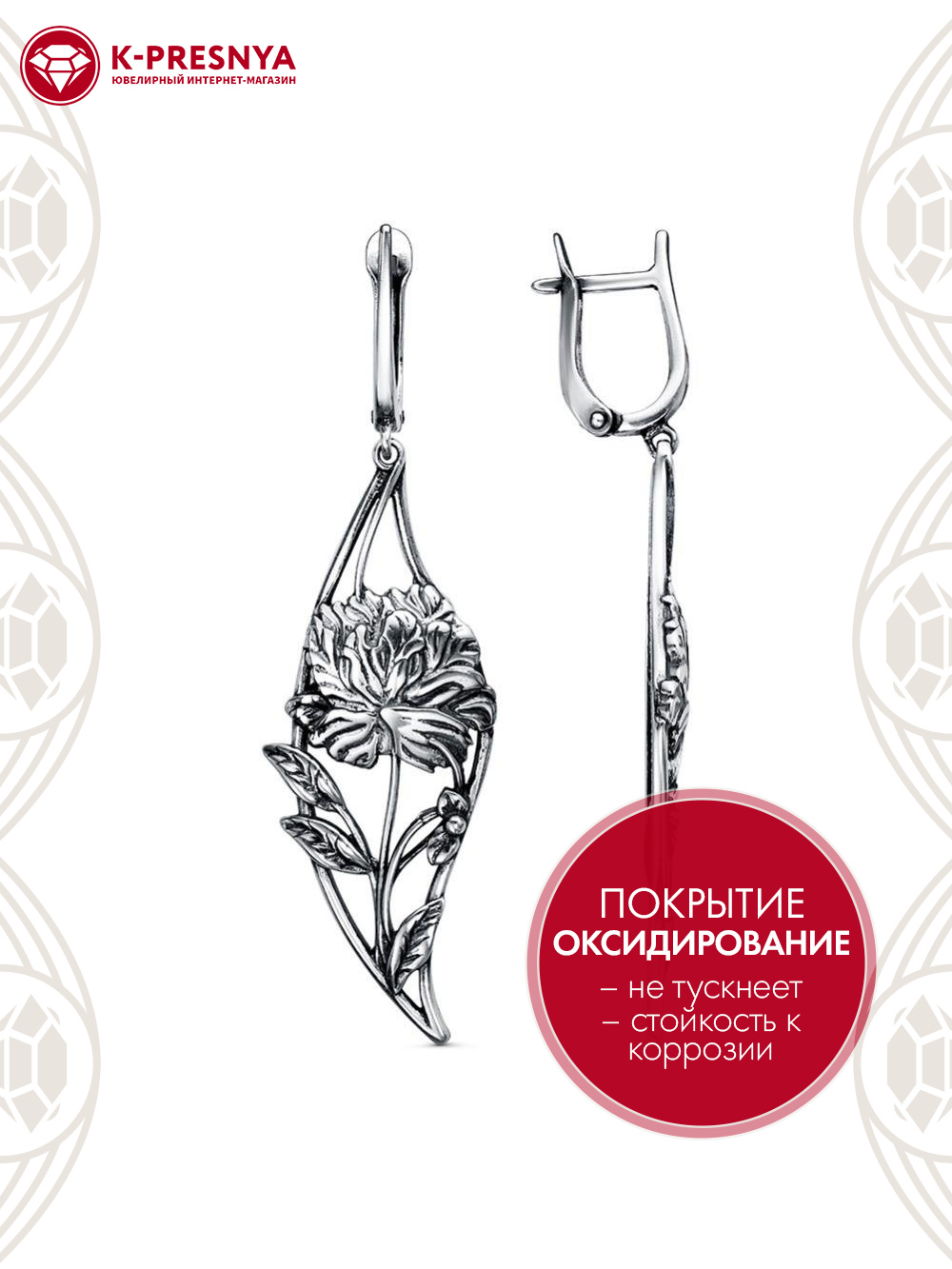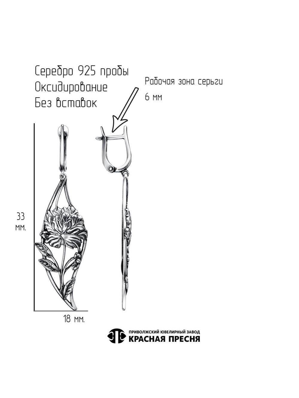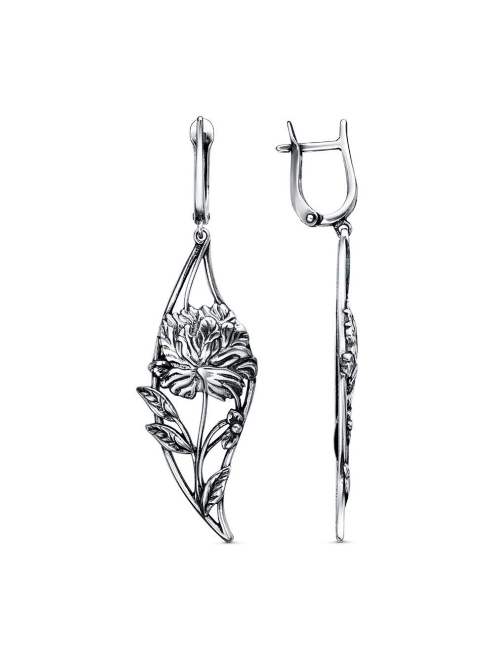 Серьги серебро 925 пробы, покрытие - оксидирование, без вставок
