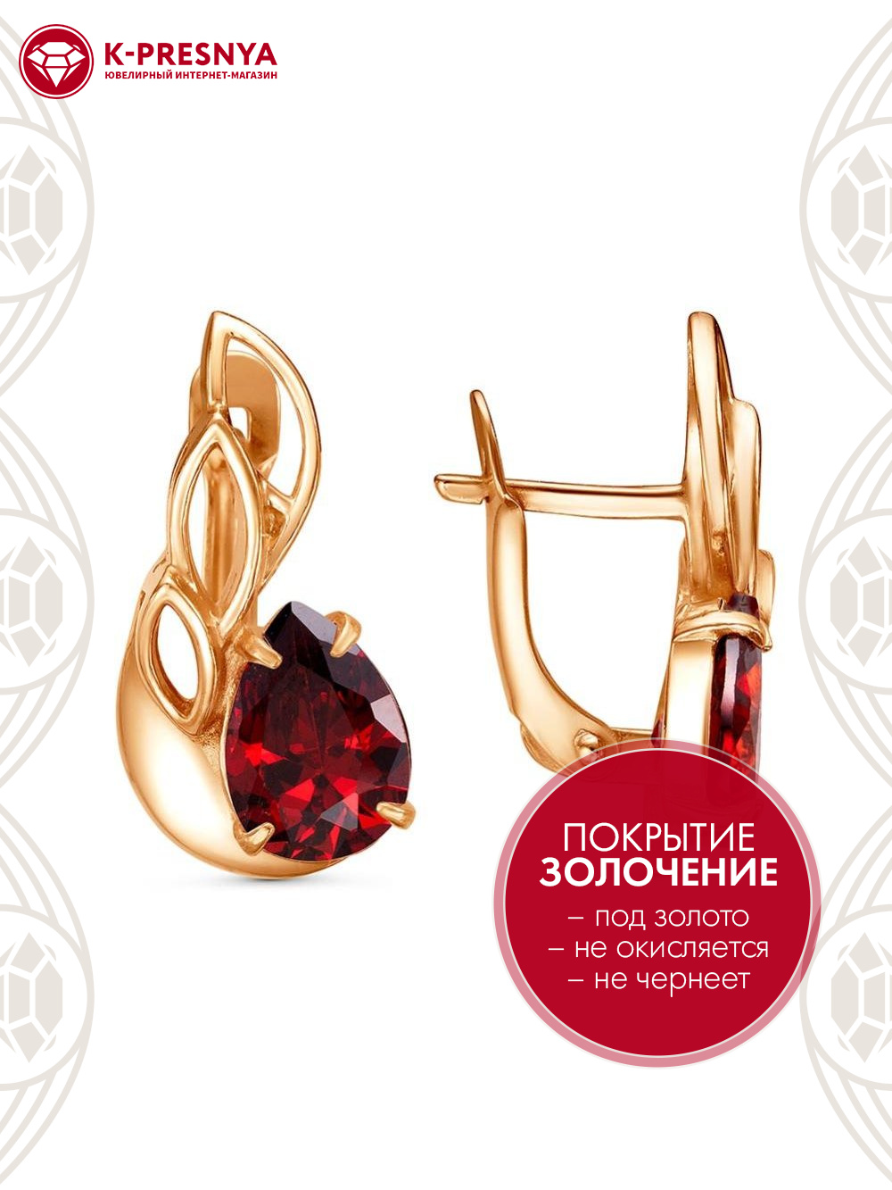 Серьги бижутерия, покрытие - золочение, вставка - фианит (недрагоценный камень)