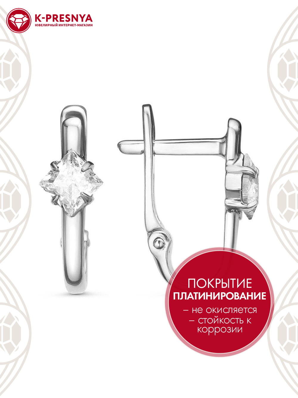 Серьги серебро 925 пробы, покрытие - платинирование, вставка - фианит (недрагоценный камень)