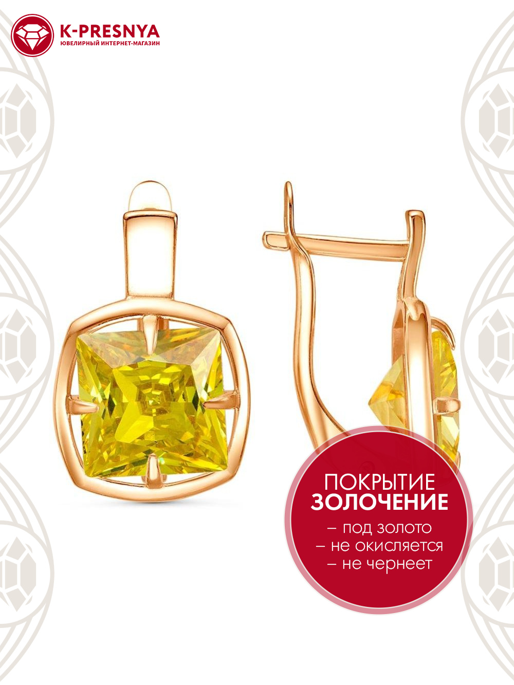 Серьги бижутерия, покрытие - золочение, вставка - фианит (недрагоценный камень)
