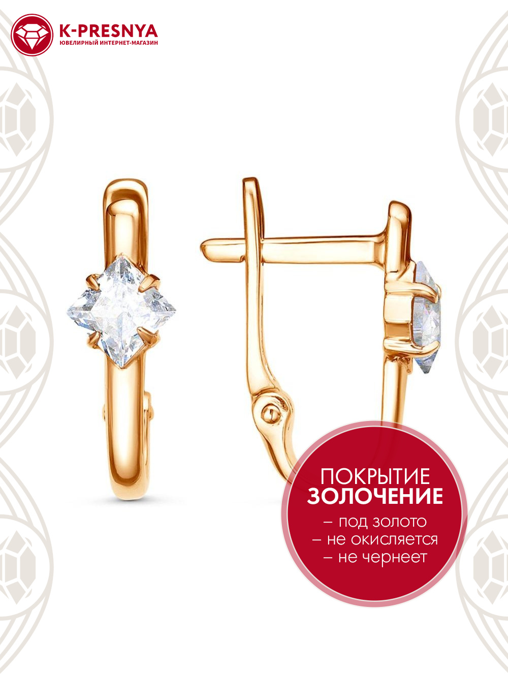 Серьги бижутерия, покрытие - золочение, вставка - фианит (недрагоценный камень)