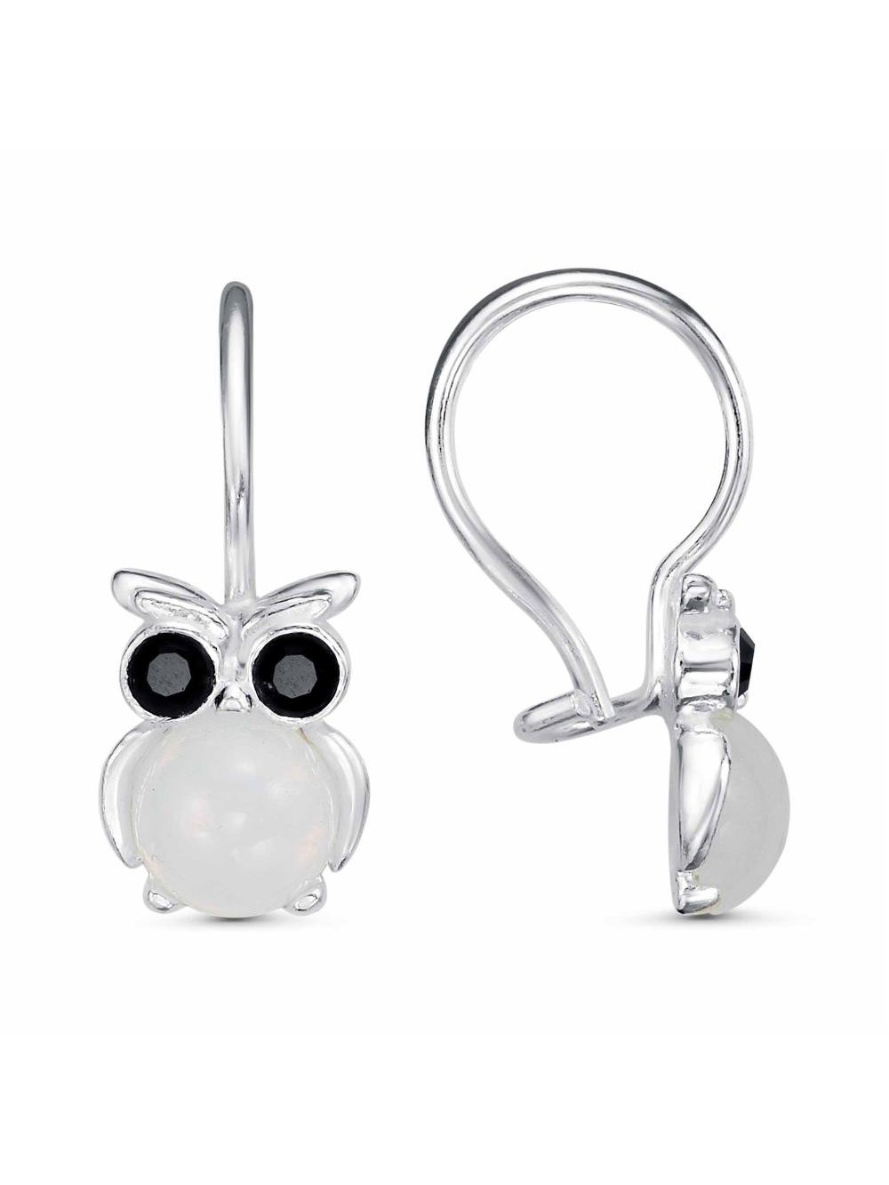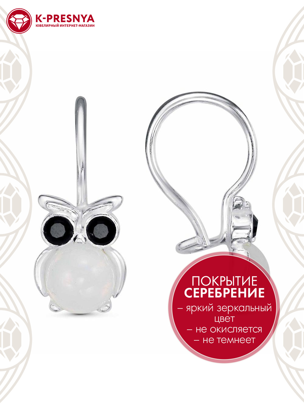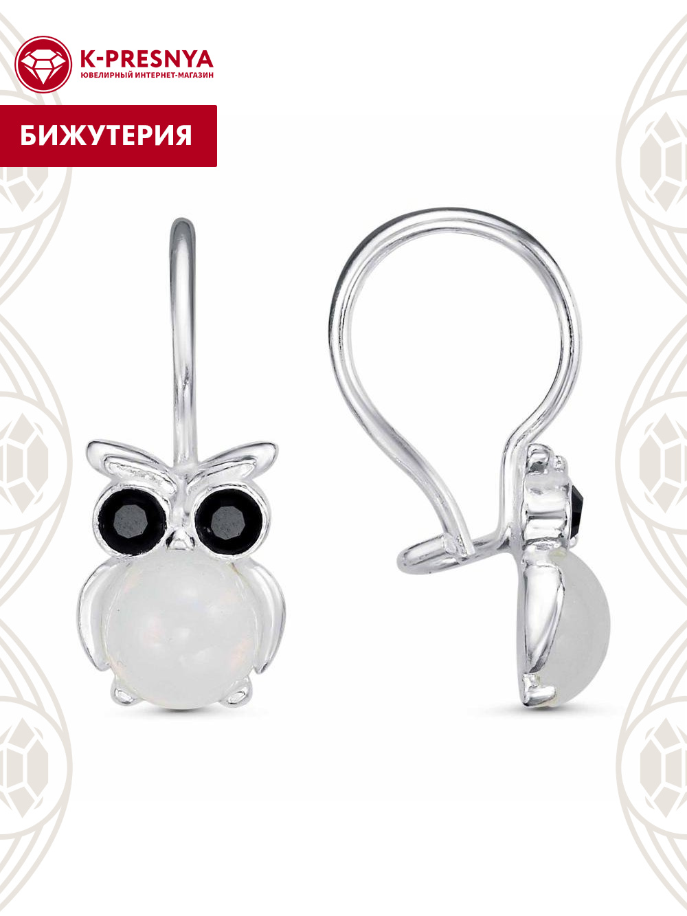 Серьги бижутерия, покрытие - серебрение, вставка - искусственный агат белый, стекло ювелирное preciosa