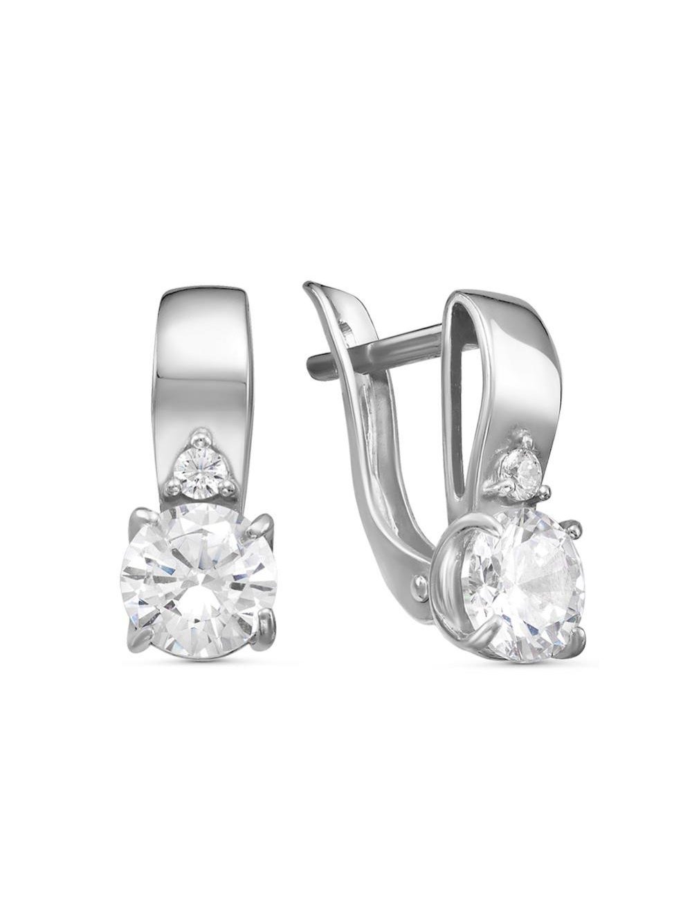 Серьги бижутерия, покрытие - платинирование, вставка - фианит (недрагоценный камень)