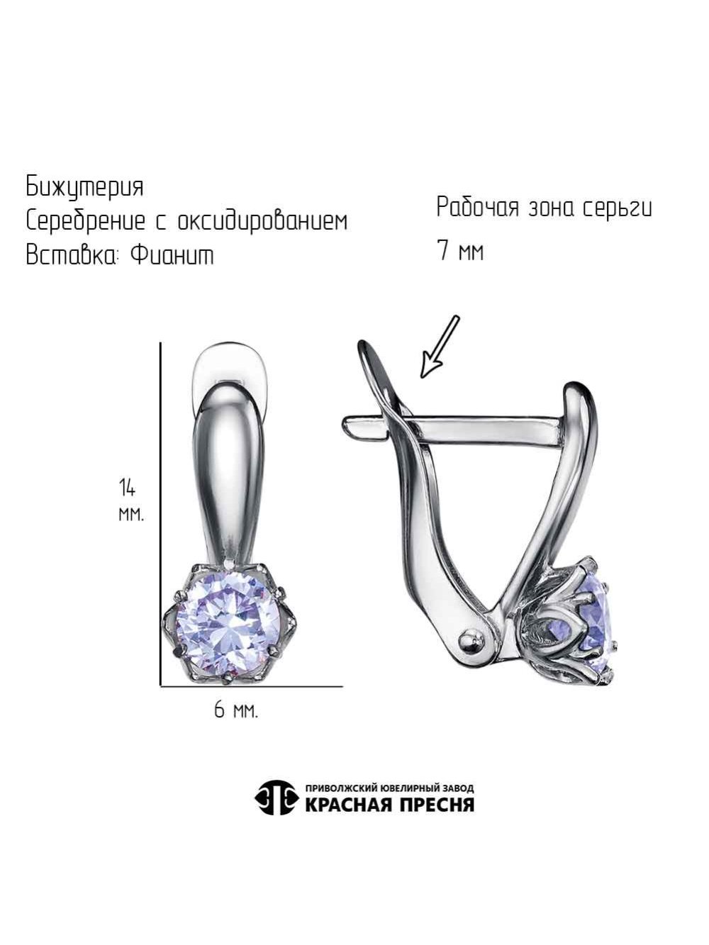 Серьги бижутерия, покрытие - серебрение с оксидированием, вставка - фианит (недрагоценный камень)