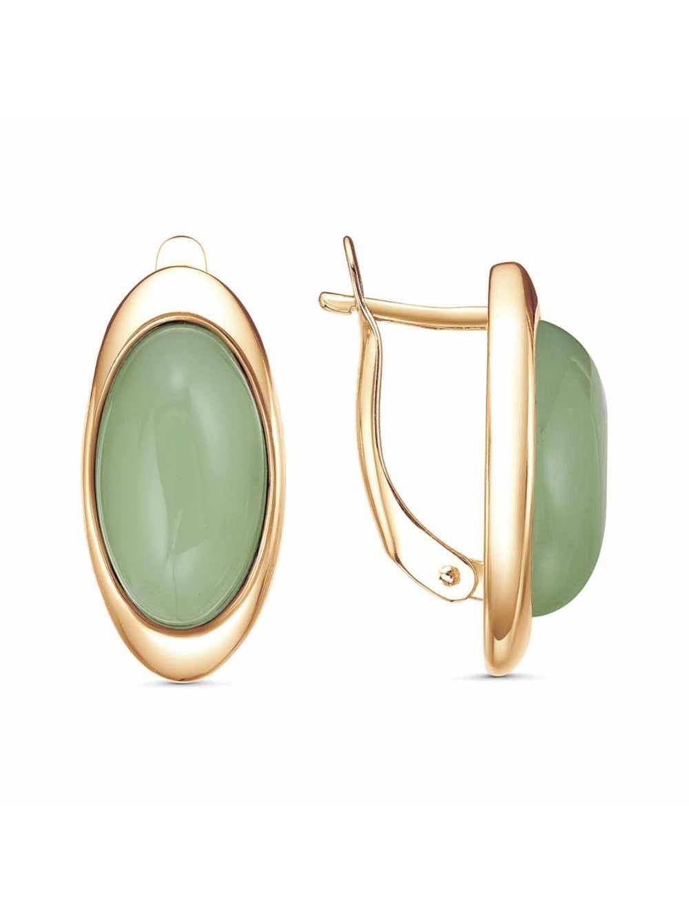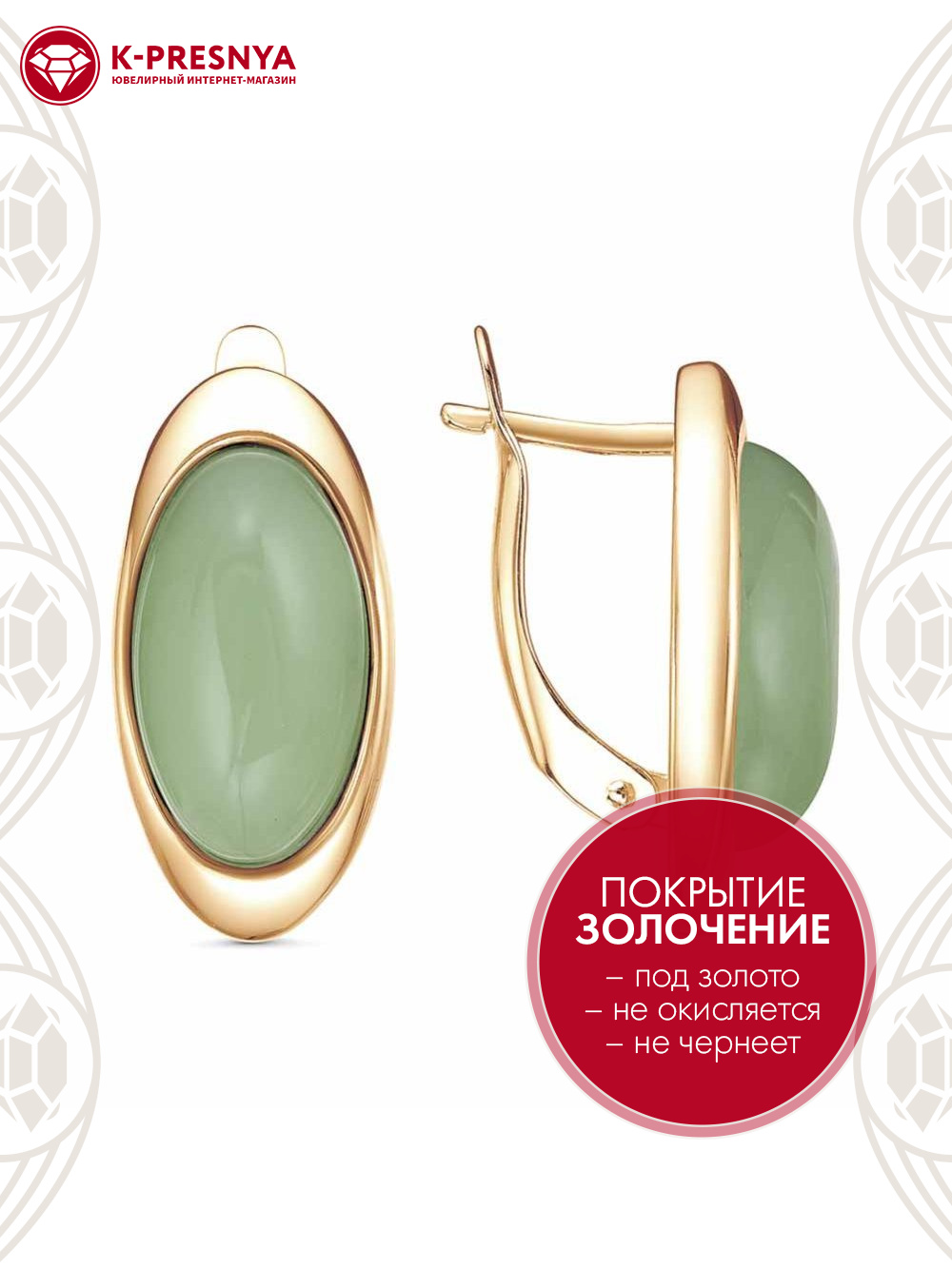 Серьги бижутерия, покрытие - золочение, вставка - искусственный нефрит