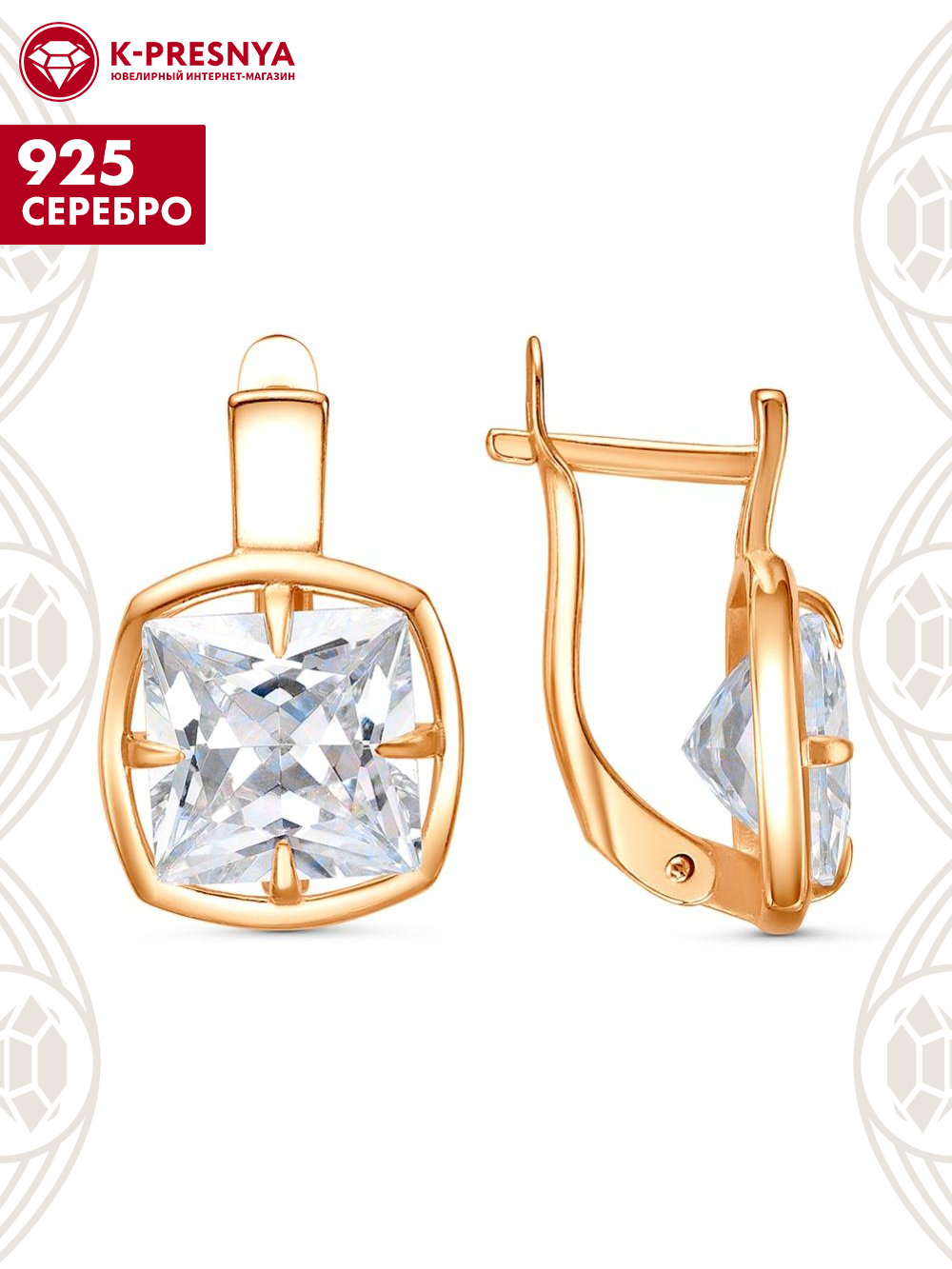 Серьги серебро 925 пробы, покрытие - золочение, вставка - фианит (недрагоценный камень)