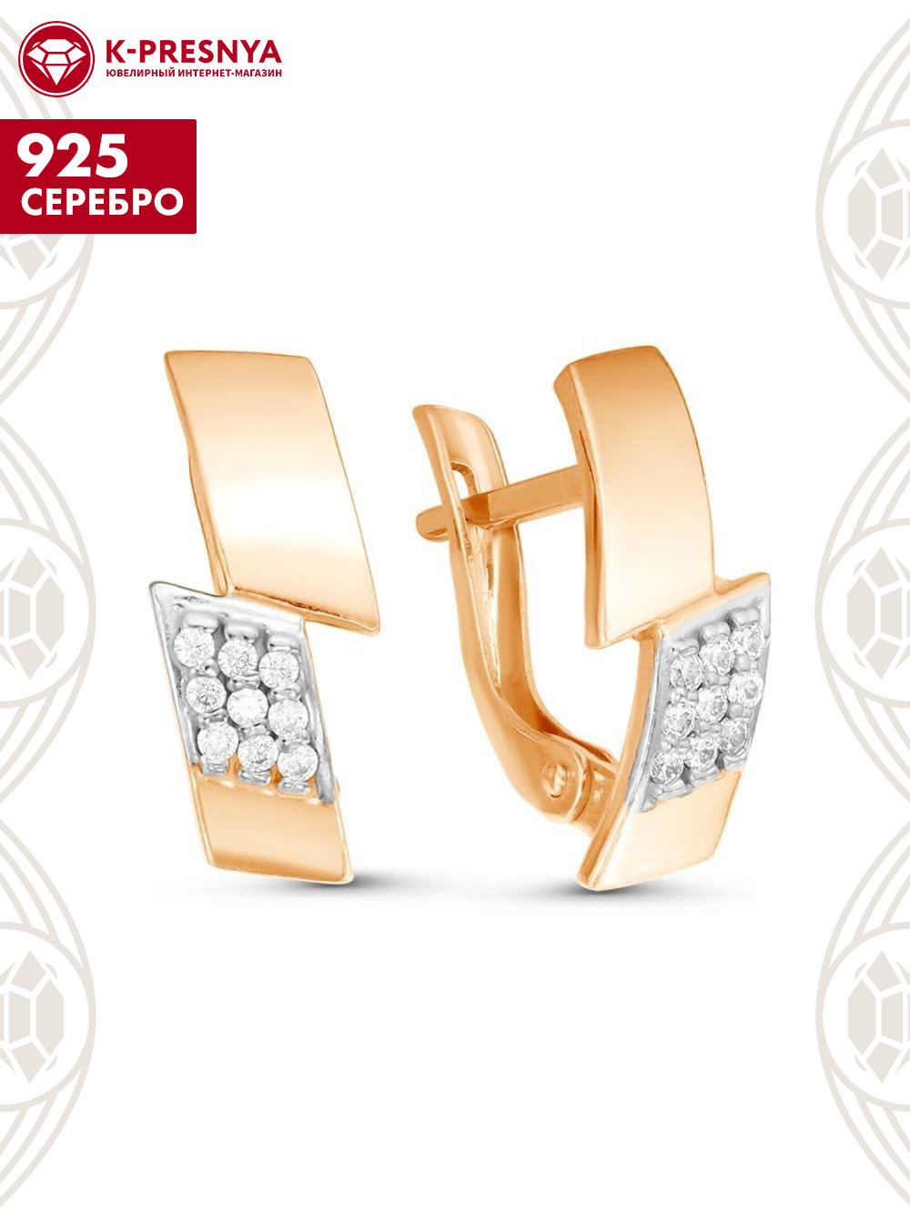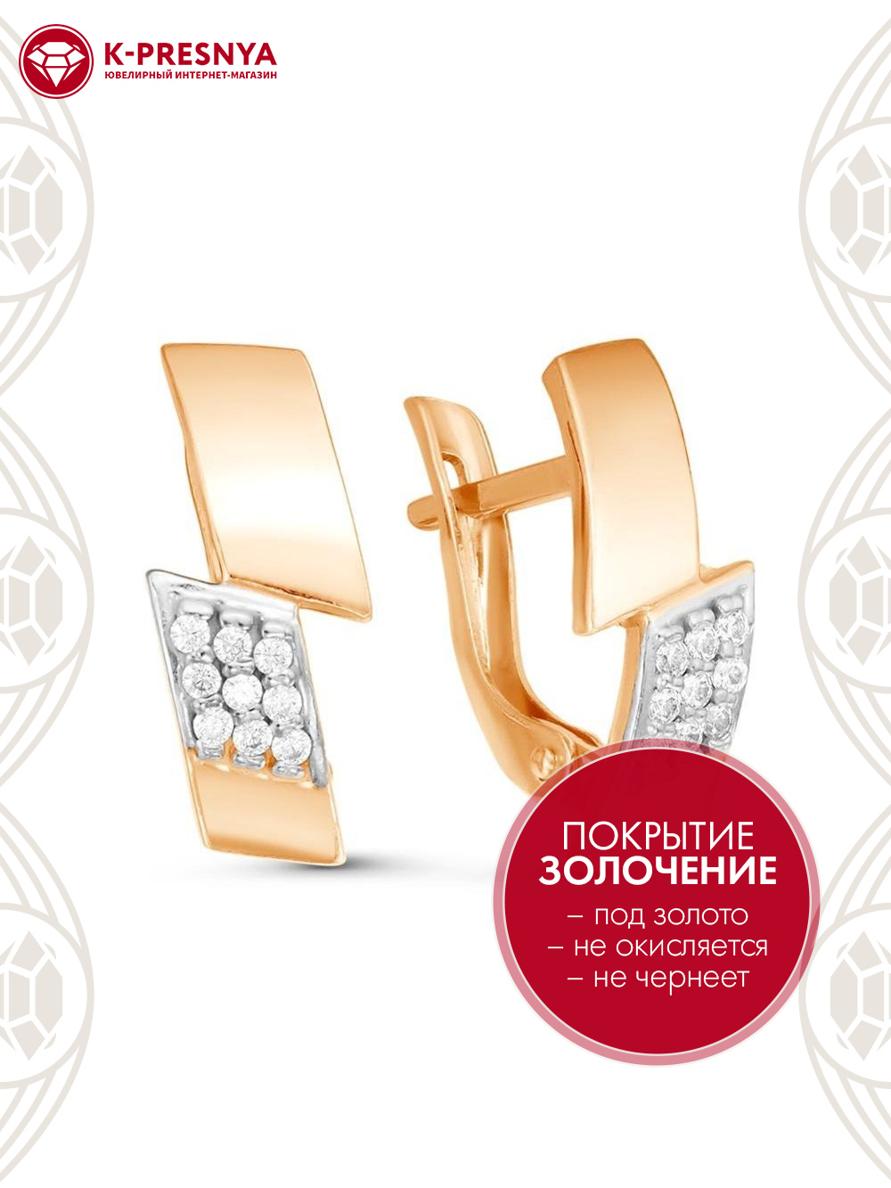 Серьги серебро 925 пробы, покрытие - золочение, выборочное родирование, вставка - фианит (недрагоценный камень)