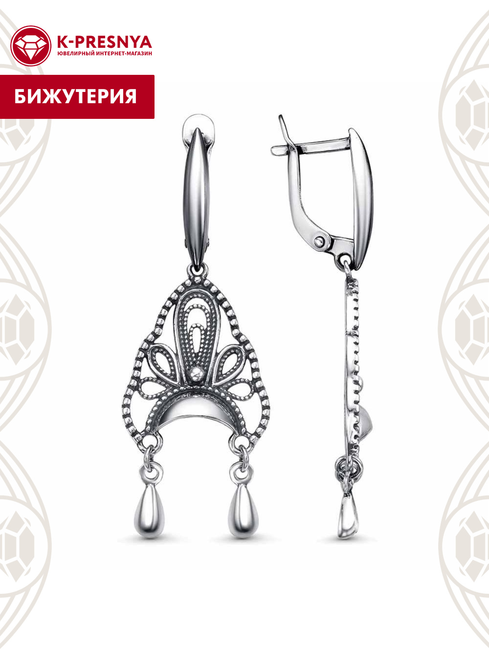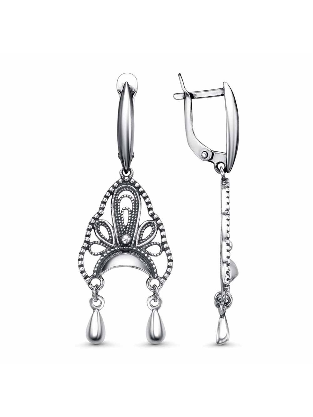Серьги бижутерия, покрытие - серебрение с оксидированием, без вставок