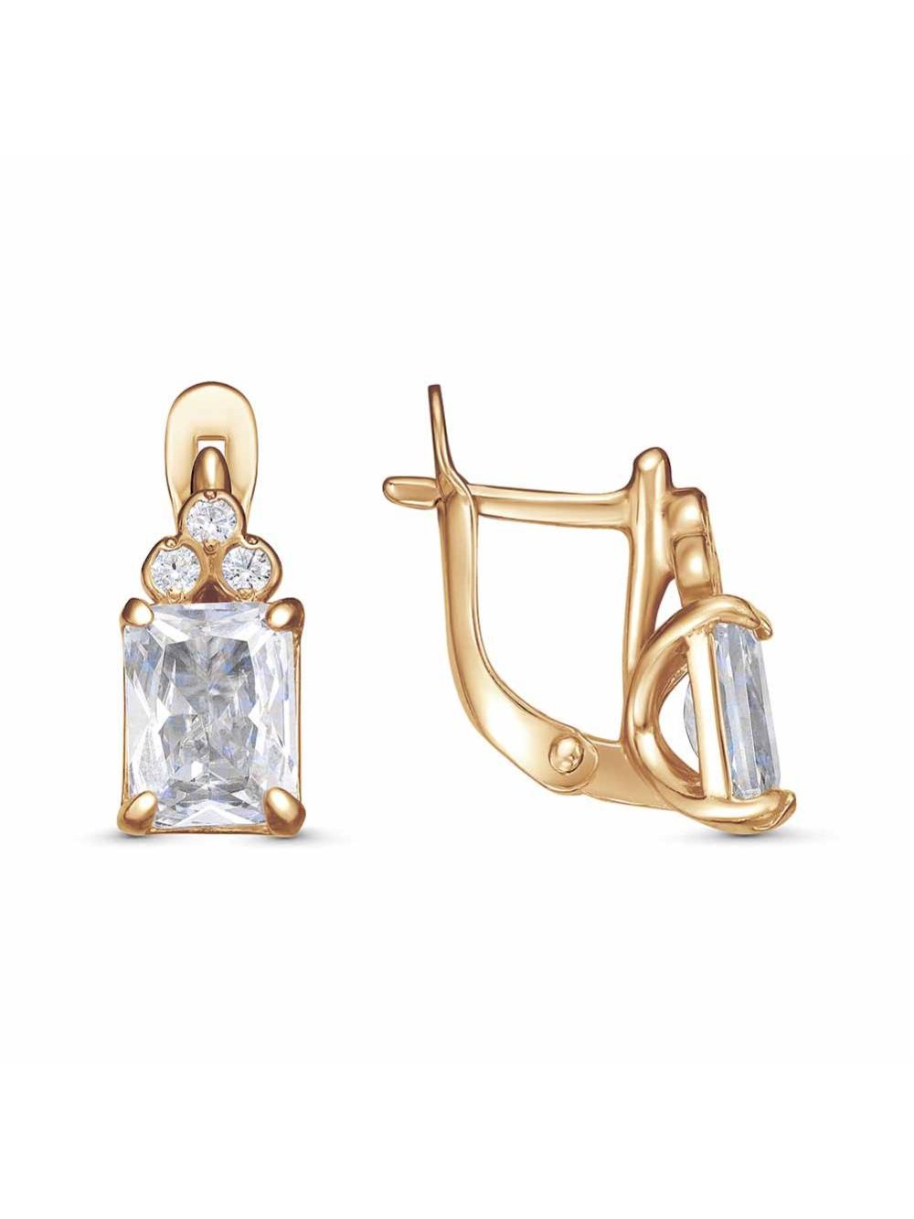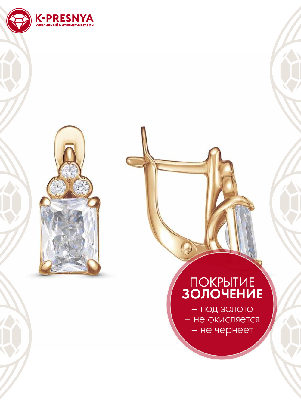 Серьги серебро 925 пробы, покрытие - золочение, вставка - фианит (недрагоценный камень)