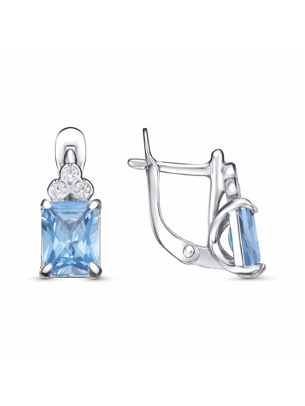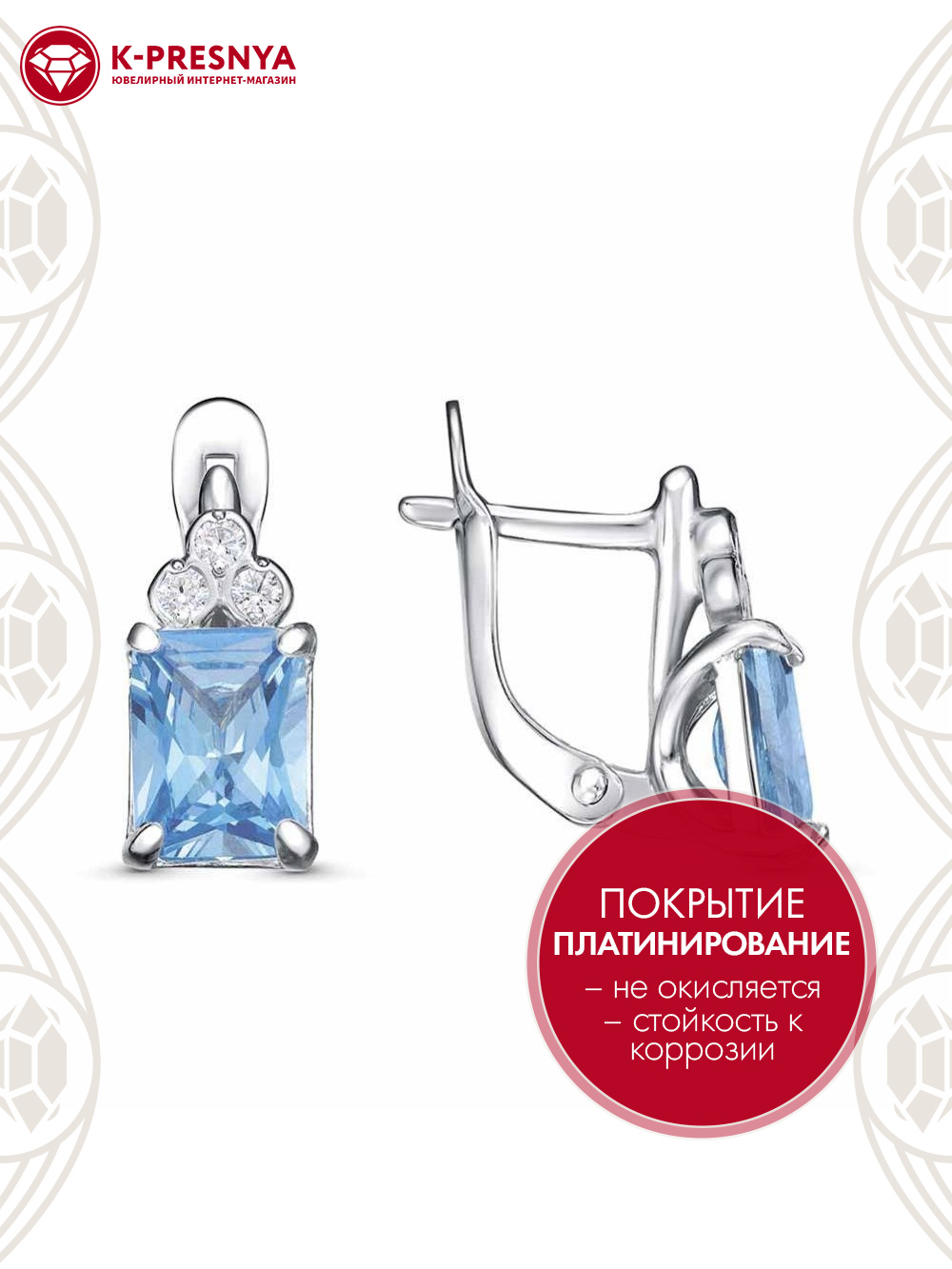 Серьги серебро 925 пробы, покрытие - платинирование, вставка - фианит (недрагоценный камень)
