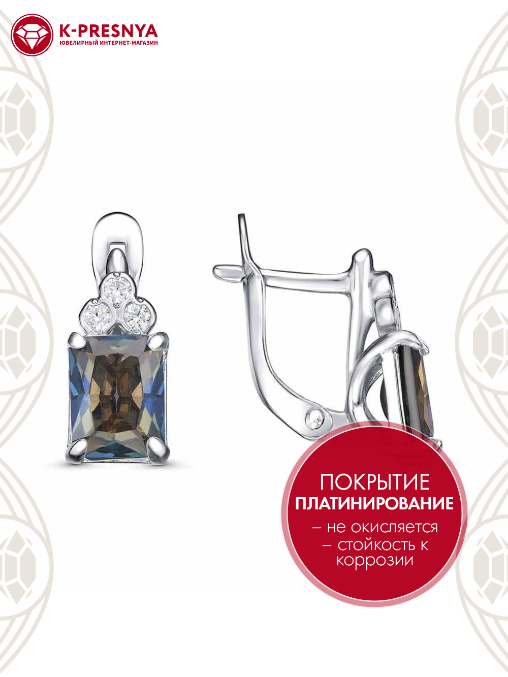 Серьги серебро 925 пробы, покрытие - платинирование, вставка - фианит (недрагоценный камень)