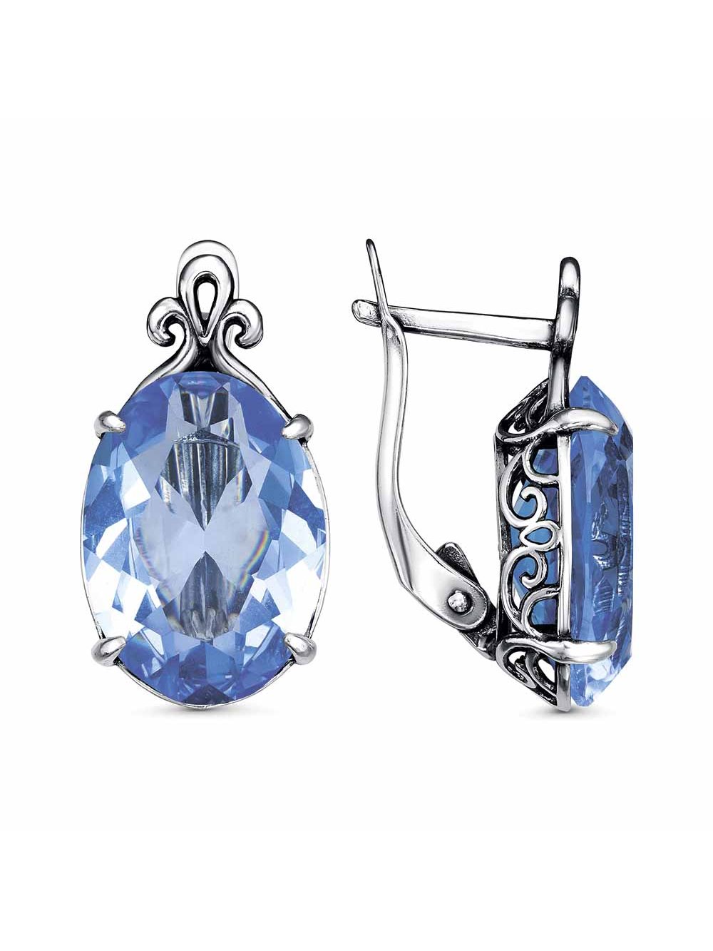 Серьги серебро 925 пробы, покрытие - оксидирование, вставка - стекло ювелирное собственной огранки