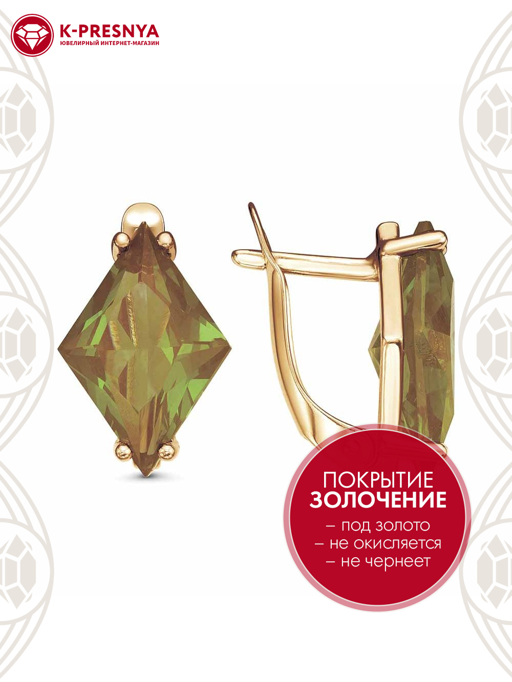 Серьги серебро 925 пробы, покрытие - золочение, вставка - ситалл собственной огранки