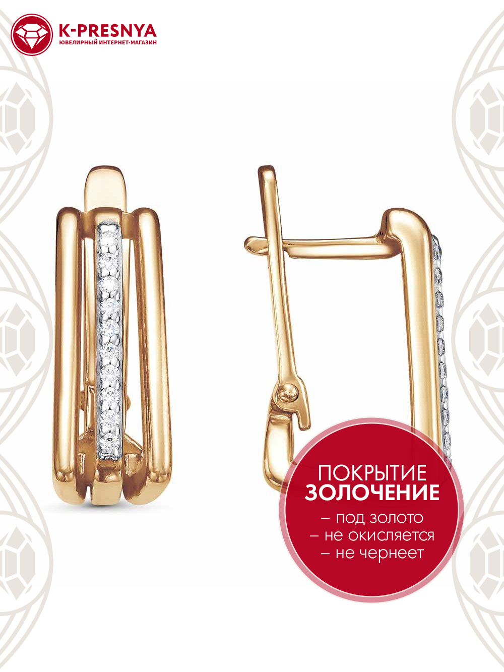 Серьги серебро 925 пробы, покрытие - золочение, выборочное родирование, вставка - фианит (недрагоценный камень)