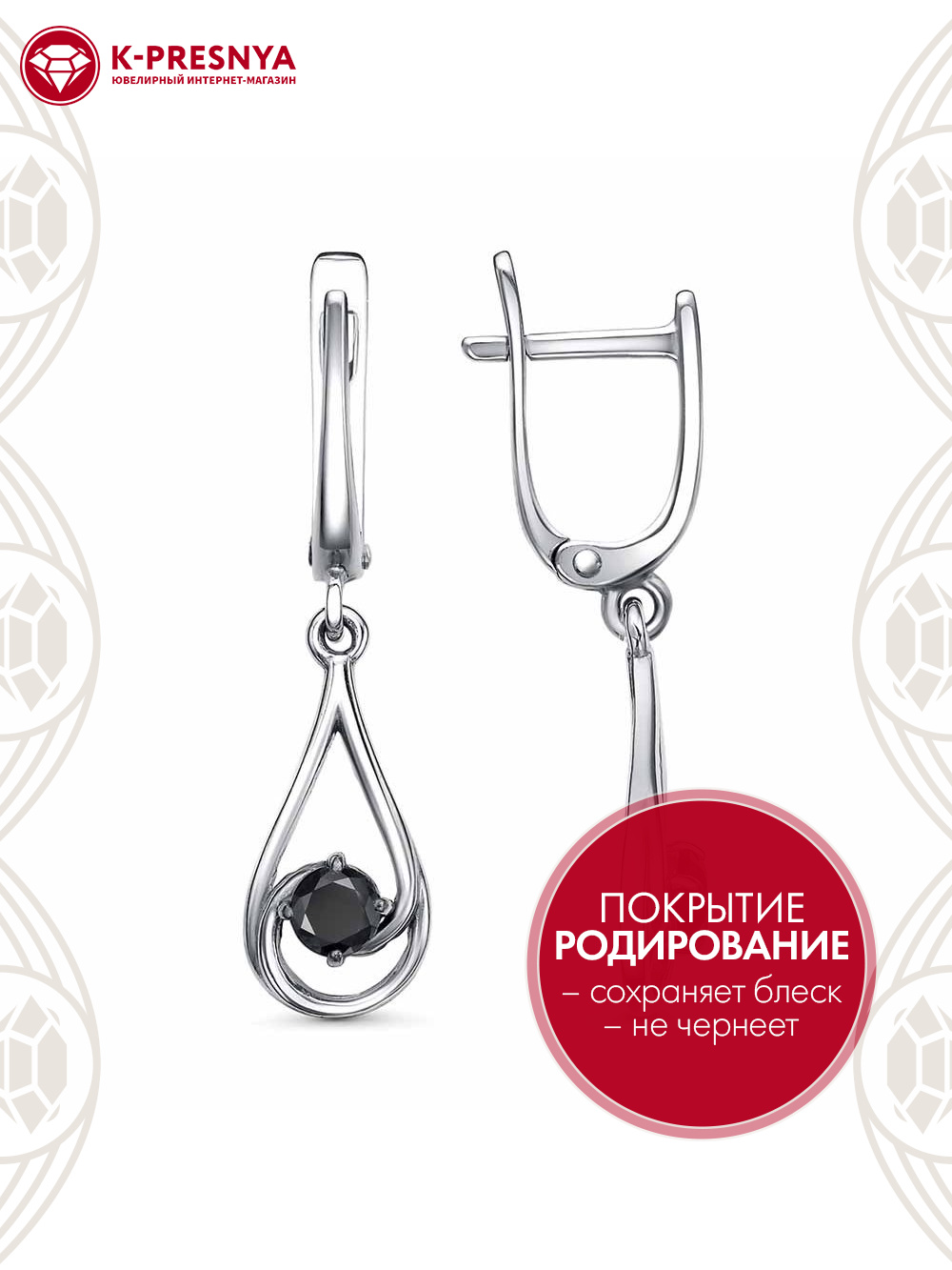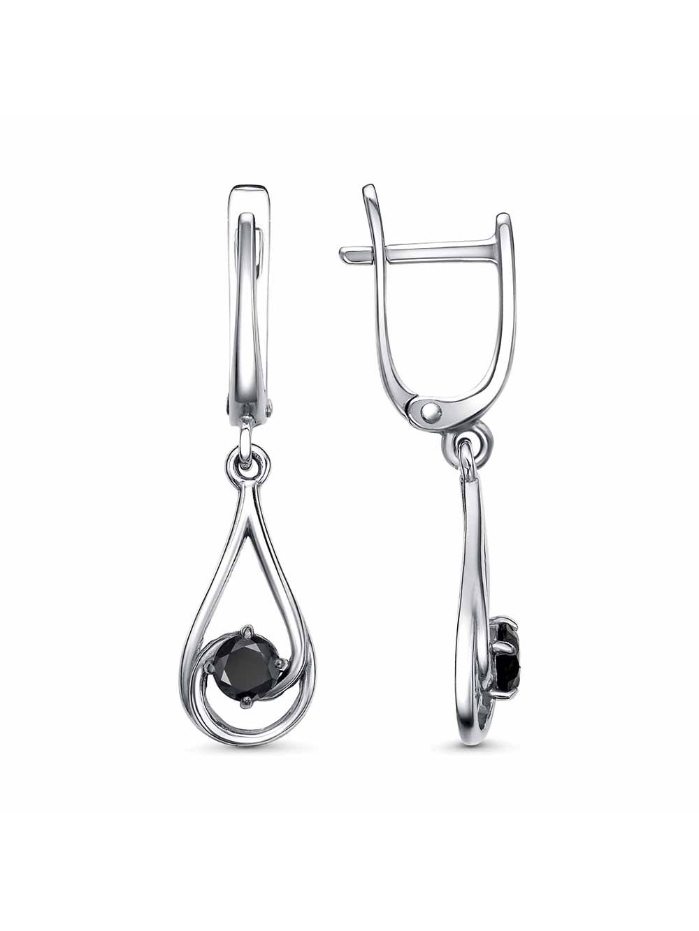 Серьги серебро 925 пробы, покрытие - родирование, вставка - фианит (недрагоценный камень)