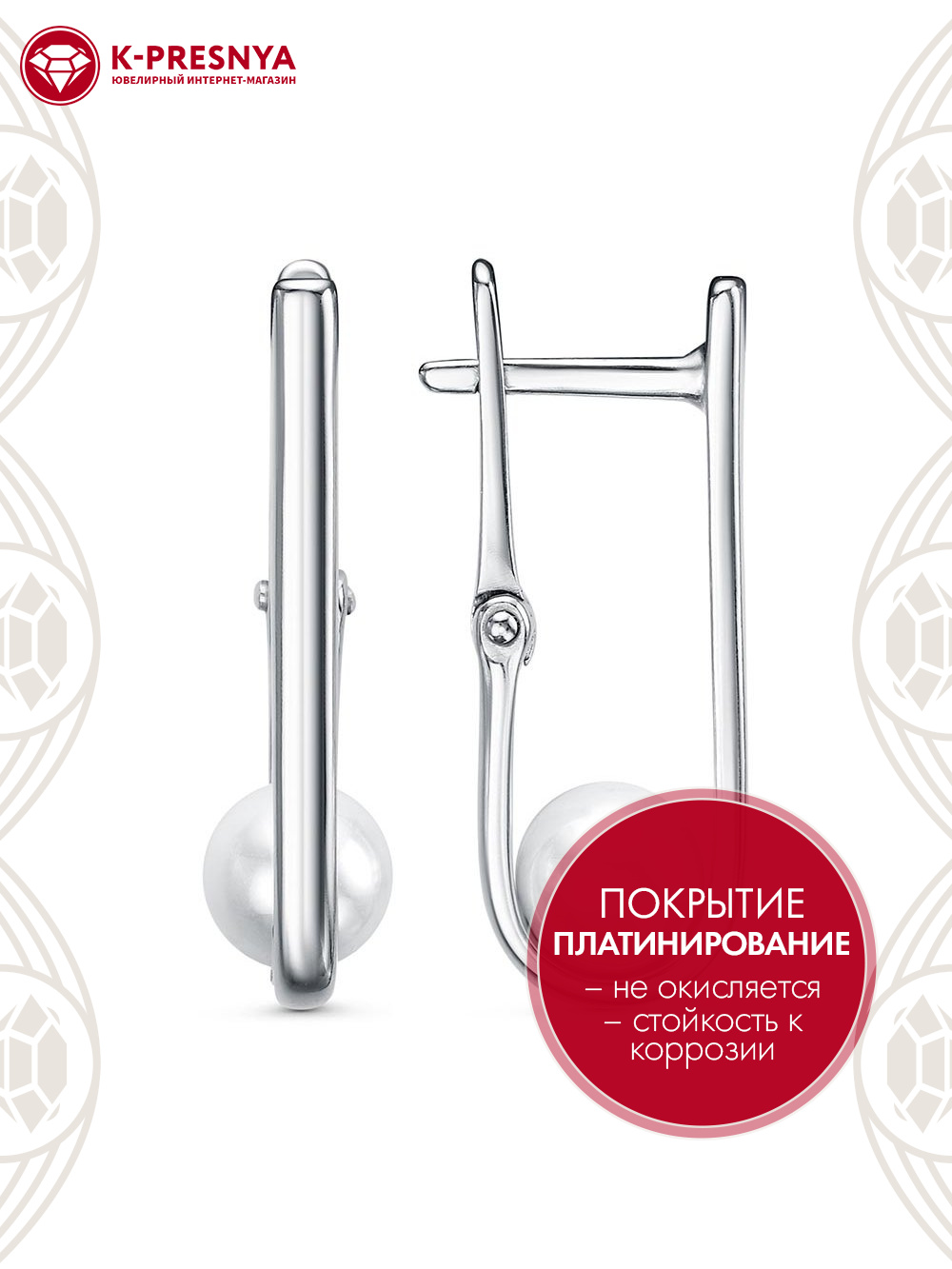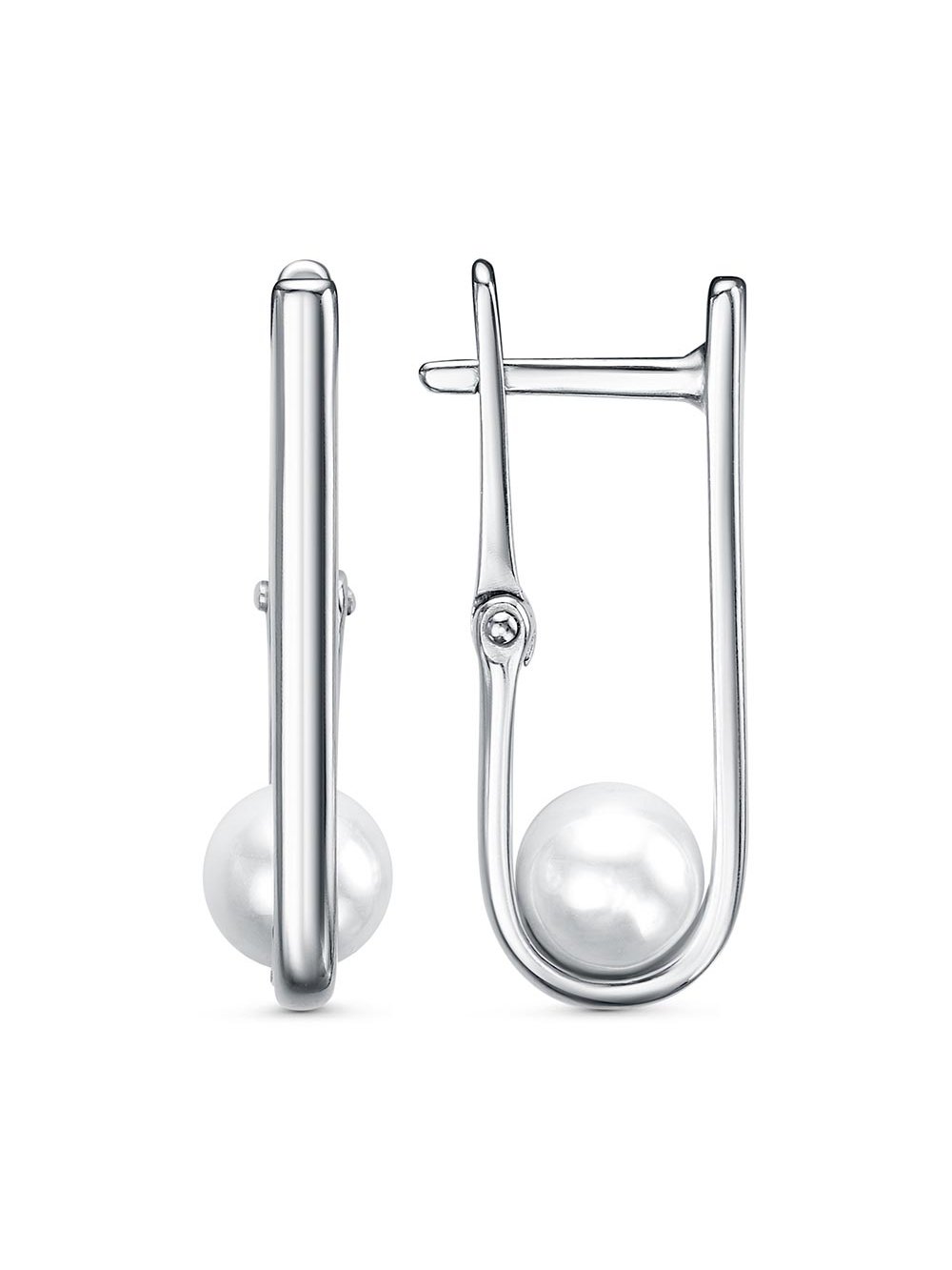 Серьги бижутерия, покрытие - платинирование, вставка - имитация жемчуга