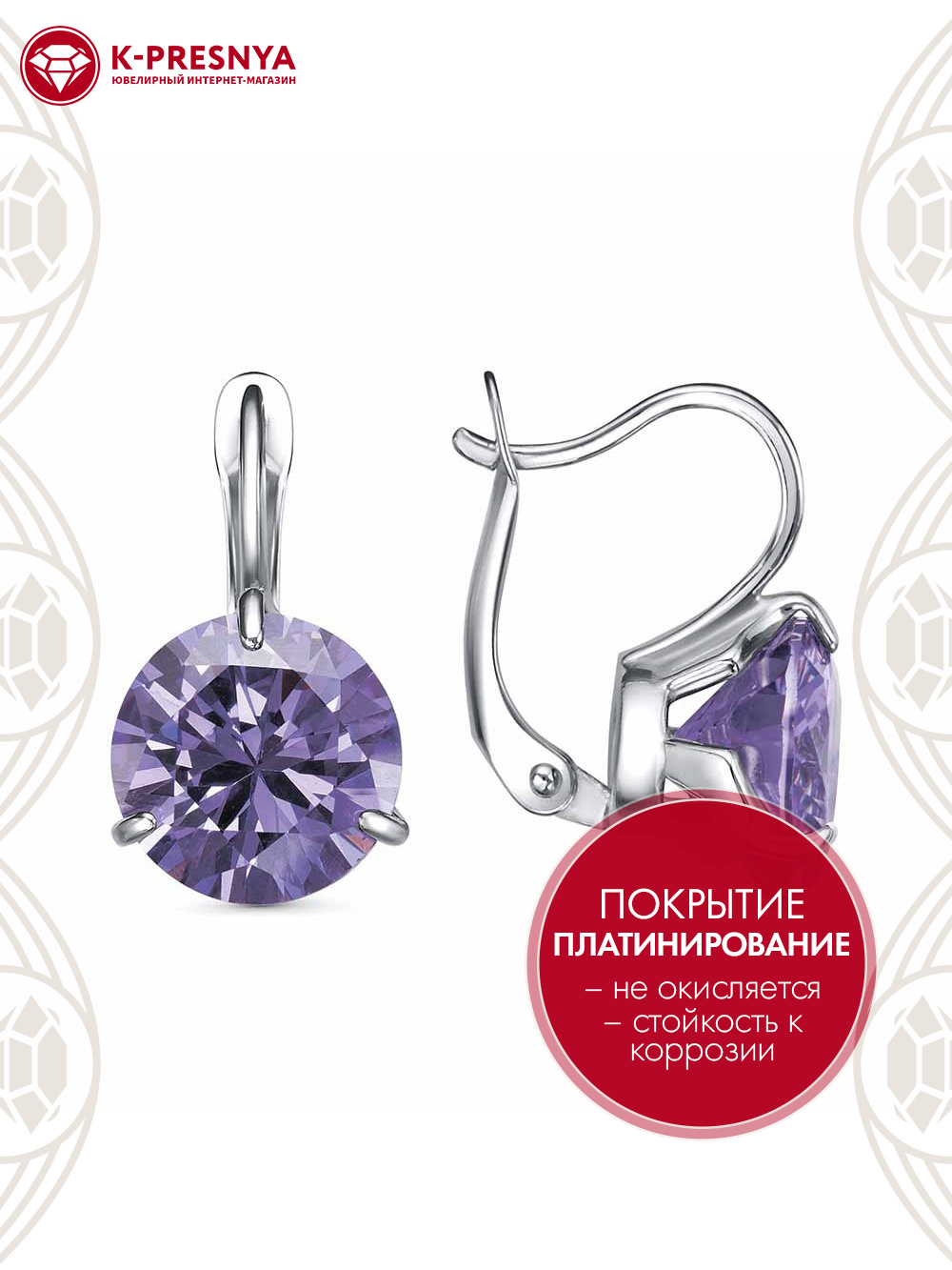 Серьги серебро 925 пробы, покрытие - платинирование, вставка - фианит (недрагоценный камень)