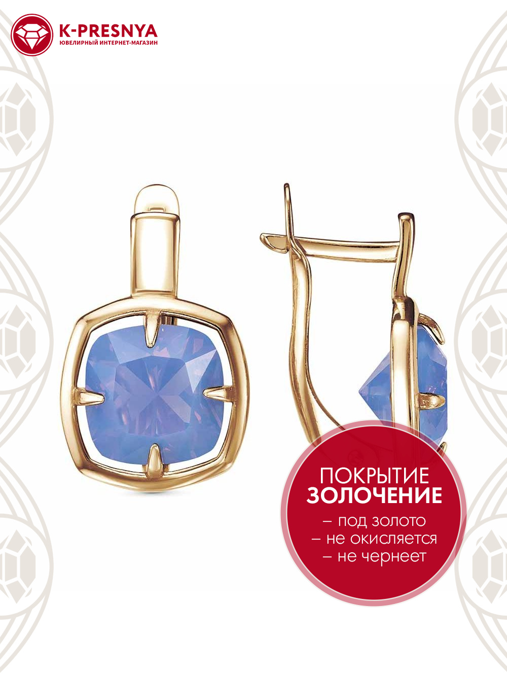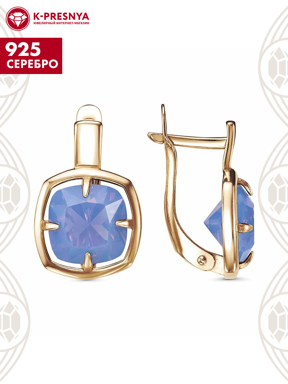 Серьги серебро 925 пробы, покрытие - золочение, вставка - ситалл собственной огранки